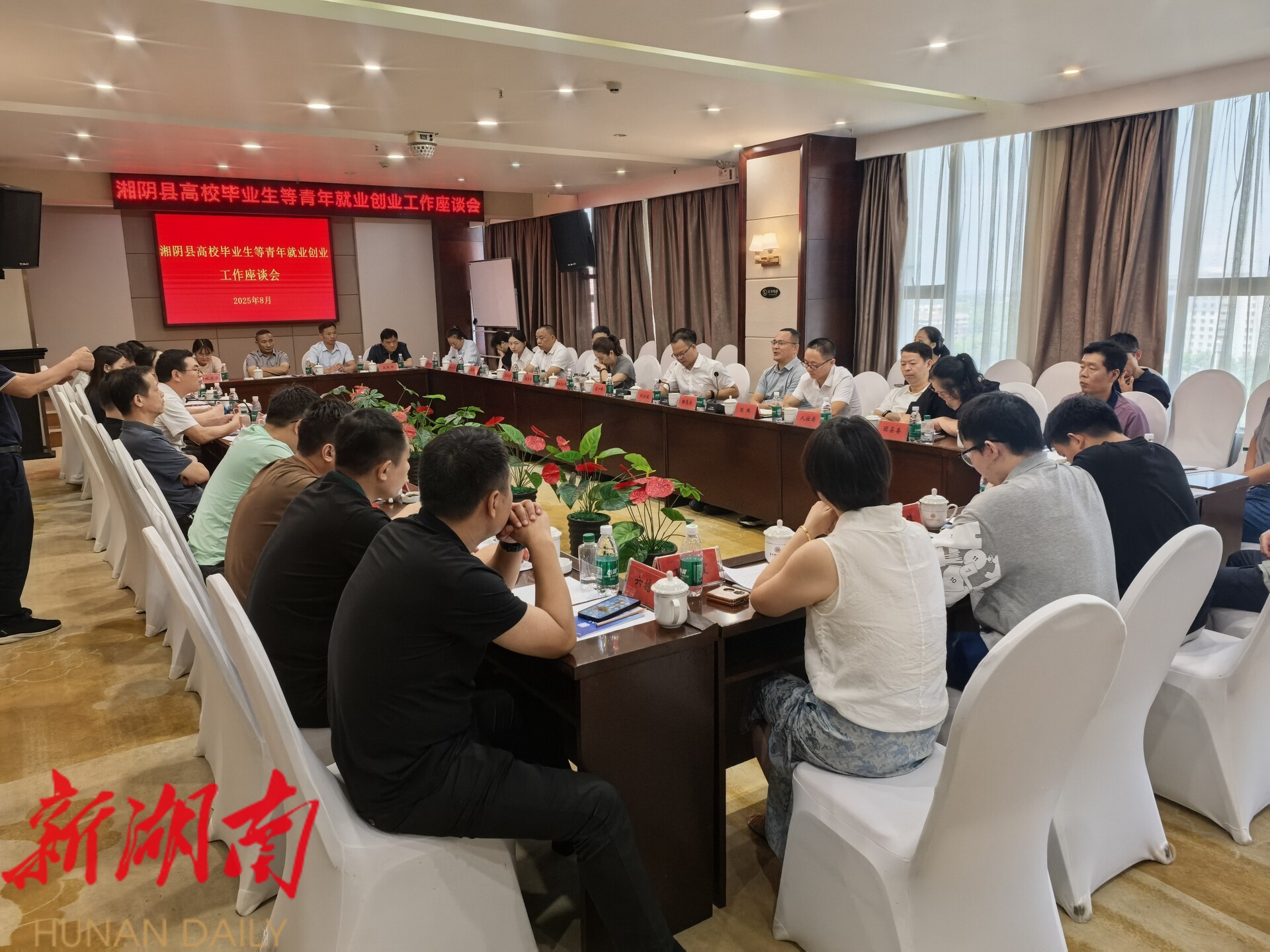 在随后召开的高校毕业生等青年群体就业创业工作座谈会上,湘阴县人社局汇报了当前全县青年就业创业工作开展情况。与会代表围绕支持高校毕业生、退役军人等重点群体创业就业展开深入交流,共同探讨更精准、更有效的政策与服务方案,致力为青年人才在湘阴施展才华、实现梦想营造更优质的环境。
