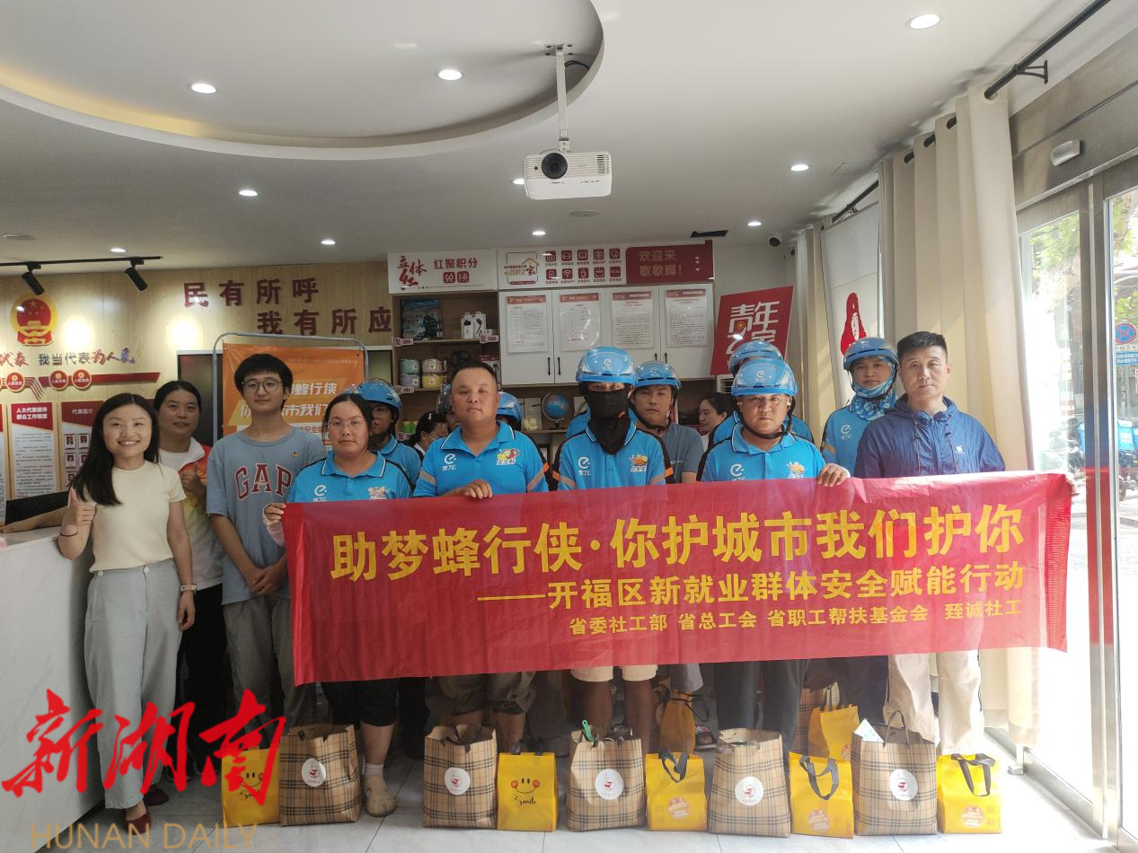 湖南日报·新湖南客户端8月21日讯(通讯员 陈瑶 熊赳)经过一个月的精彩推进,近日,一场聚焦新就业群体安全与健康的暖心行动——“助梦蜂行侠·你护城市我们护你”长沙市开福区新就业群体安全赋能行动圆满收官。
