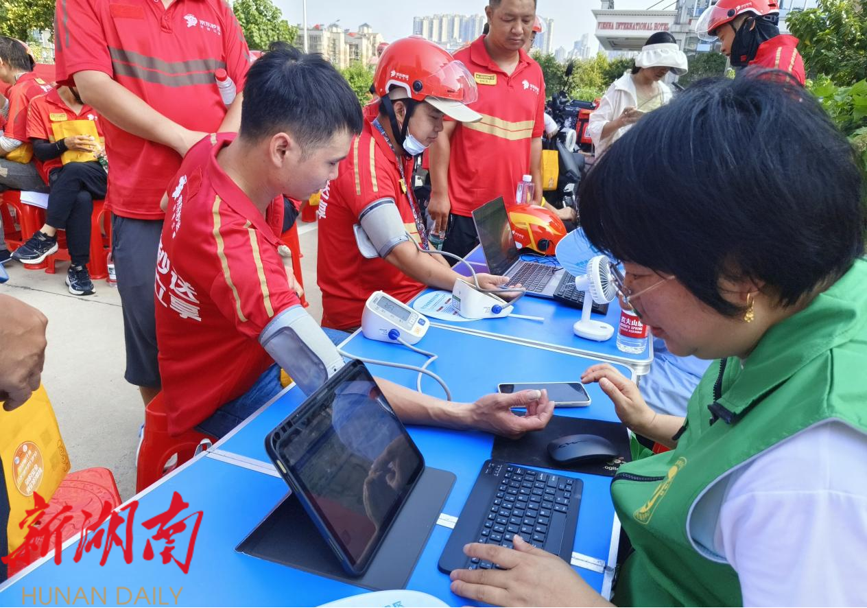 本次“助梦蜂行侠”安全赋能行动,不仅链接了湖南省职工帮扶基金会提供的300份健康关爱包的支持,更联动16个街道卫健志愿力量,成功从街道卫生服务中心、社区招募专业人员和志愿者,组建起16支“助梦蜂行侠”健康卫生志愿服务队,定期为外卖员、快递员等新就业群体提供血压、血糖检测、中医把脉等基础健康服务。