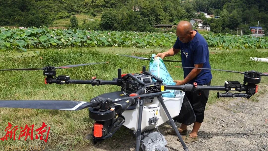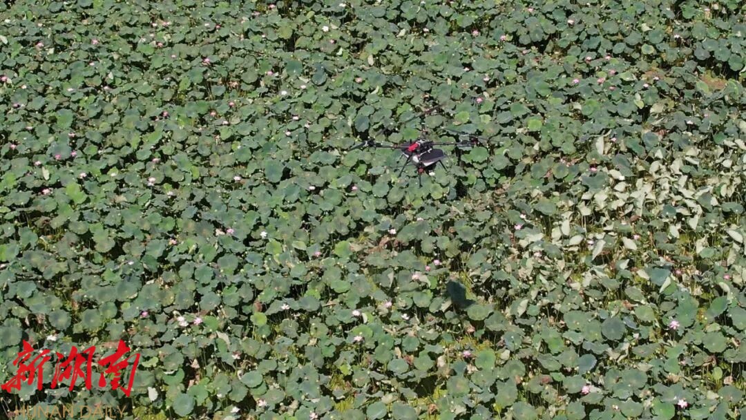 湖南日报·新湖南客户端8月21日讯(通讯员 钟彬豪 王晶晶)8月19日,在八大公山镇筲箕池村的荷花种植基地里,百亩荷花竞相绽放,硕大碧绿的荷叶随风摇曳。荷叶间,村民尚生运正在娴熟地用植保无人机给荷田施肥,自从采用无人机施肥技术后,尚生运再也不会为了百亩荷塘施肥不及时而感到烦恼了。