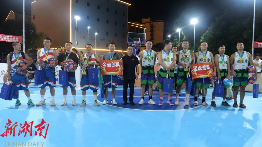 湖南日报·新湖南客户端8月21日讯(通讯员 钟彬豪)8月20日晚,2025年全民健身日系列活动暨桑植县第四届“皓镈杯”4vs4篮球友谊赛在澧源镇老观潭社区篮球场圆满闭幕。经过10个比赛日的激烈角逐,最终,甲组猛虎营队、乙组今麦郎队获得冠军。
