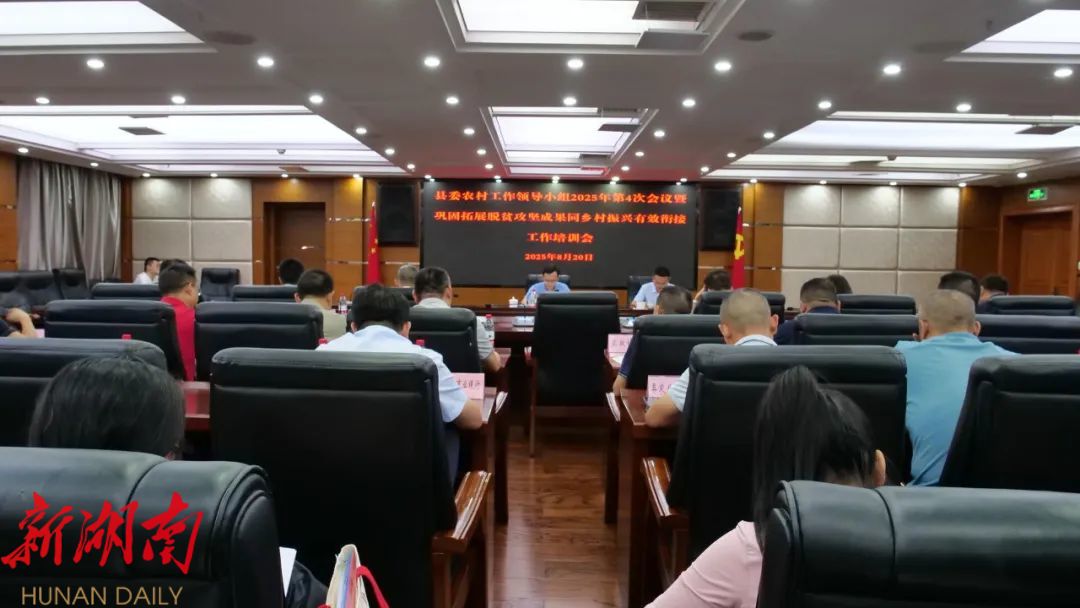 湖南日报·新湖南客户端8月21日讯(通讯员 庄丹丹)8月20日,县委农村工作领导小组2025年第4次会议暨巩固拓展脱贫攻坚成果同乡村振兴有效衔接工作培训会召开。县委副书记、政法委书记王兴树主持会议,副县长周擎出席会议。