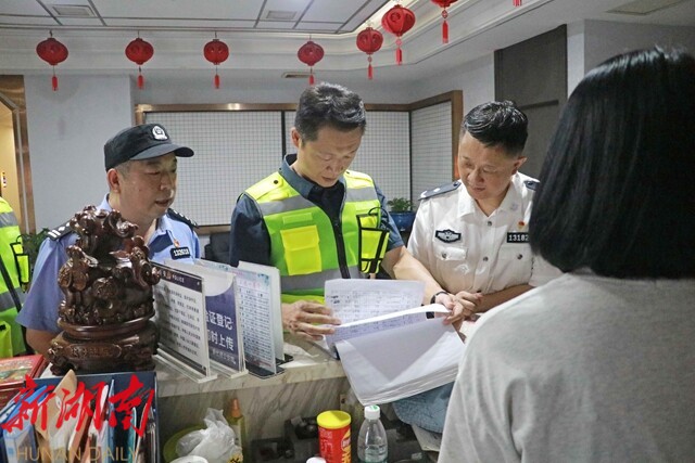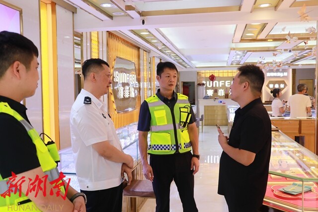 彭韬一行在街面随机对宾馆、酒店、商铺的安全工作进行巡查,并与店主和过往群众深入交流,向他们宣讲防火、防盗、反诈、道路交通安全等知识,倾听他们对社会治安管控的意见和建议。彭韬强调,领导干部带队开展街面巡逻的目的就是“服务群众、震慑犯罪”,各乡镇(街道、林场)党政主要负责同志要在辖区带头带队常态化开展街面治安巡逻,全面提高街面见警率、管事率;县乡两级综治中心要及时分析研判街面巡逻、12345政务服务热线、网络发帖等渠道反馈的问题,强化统筹调度,确保科学精准处置。要根据治安特点和气候变化,不断优化社会面管控措施,聚焦学校、医院、商圈等重点部位,完善人防、物防、技防措施,动态调整警力部署和巡控重点,坚决消除安全隐患,全力守护人民群众生命财产安全。要不断深化“新化义警”队伍建设,凝聚起群防群治的强大合力,构建“共建共治共享”社会治理新格局,为平安新化建设保驾护航。