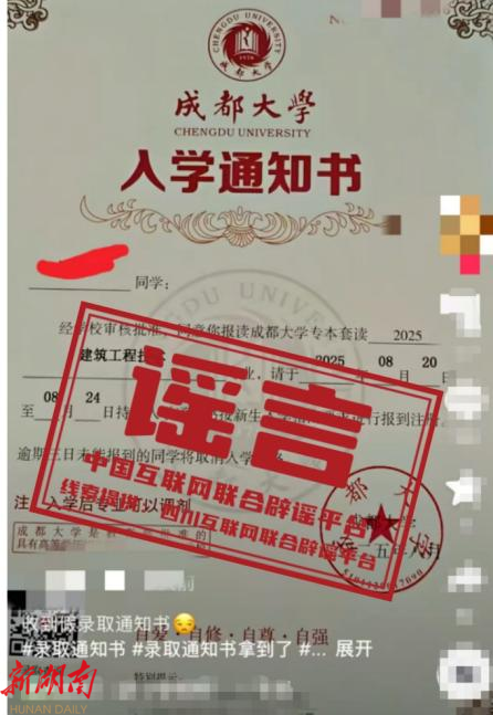 教育部多次提醒,部分机构和个人打着普通高等学历教育幌子,实际却为自考助学、网络教育等其他教育形式,或进行虚假宣传。如未通过高考招生录取获得正式通知书,无法注册普通高校正式学籍,也无法取得普通高等学校学历证书。考生及家长应通过正规渠道核验录取信息,严格保护个人信息,防止被不法分子利用。(来源:四川互联网举报辟谣平台、成都网络辟谣)