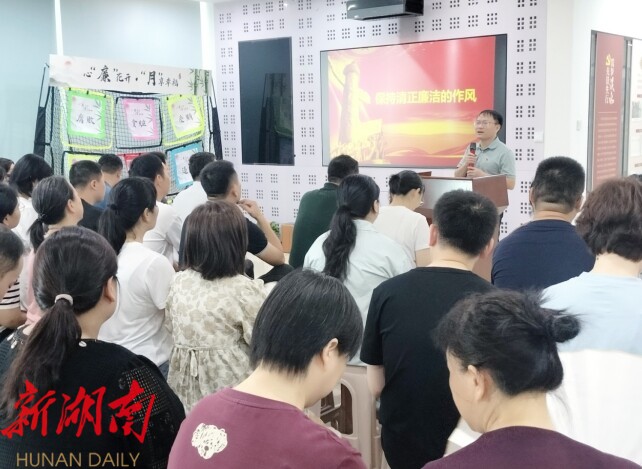 现场,月湖街道党工委书记胡芳以《保持清正廉洁的作风》为题讲授专题党课。他结合典型案例,深入剖析基层“微腐败”风险点,号召党员干部做到“四要”:对党忠诚,为民情怀,终身学习,担当干事,全面发扬湖南人“吃得苦、霸得蛮、扎硬寨、打硬仗”的优良传统,为干群划清廉洁“警戒线”。活动尾声,“知廉耻·心向廉”互动区人头攒动,大家踊跃参与“击贪念、清廉之风大家吹、守底线”等趣味游戏。
