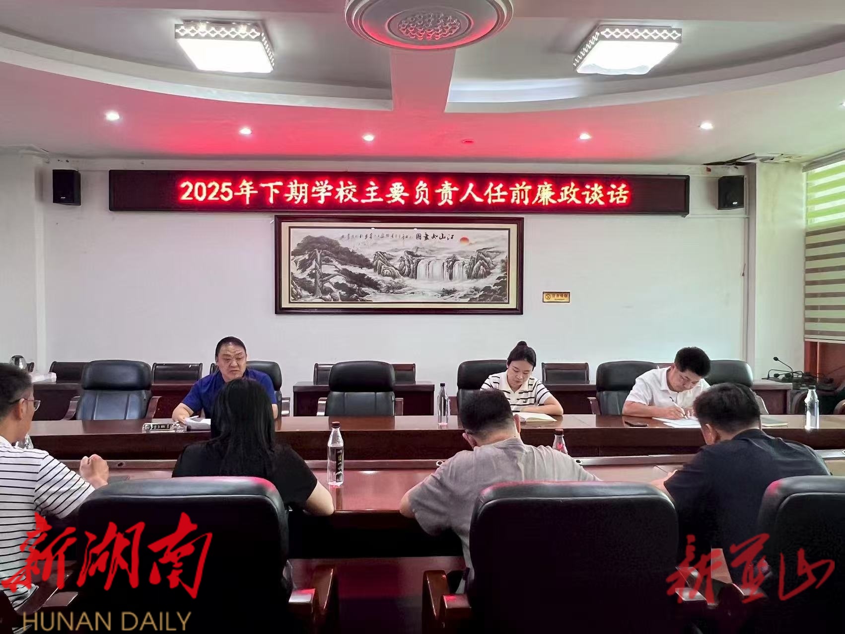 新蓝山客户端8月22日讯 (通讯员 兰季璇)“在领导岗位上要抓好党风廉政建设,严守纪律底线,不负组织重托和教职工的期待……”秋季开学在即,蓝山县纪委监委驻县教育局纪检监察组对2025年下期学校主要负责人开展任前廉政谈话。
