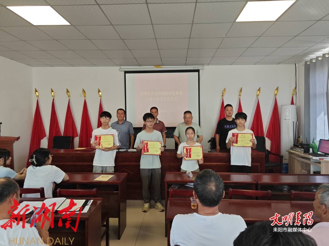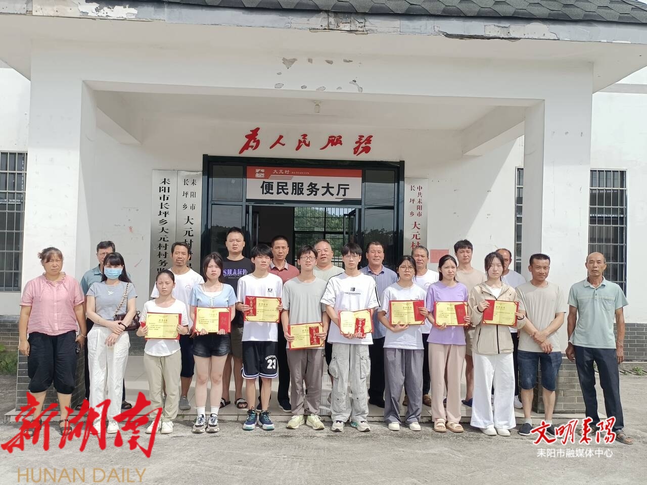 “非常感谢村里父老乡亲的慷慨,我们一定不辜负大家的期望,努力学习,追逐梦想,争取早日成才。希望有一天我们也能为村里、为社会作出自己的贡献。”考取湖南科大的准大学生黄伦说。大元村今年一共有8名学生考上大学,村里给他们每人奖励2000元钱。“今年有这么多优秀的学生考上大学,村民都非常高兴,钱虽然不多,但对孩子们是一个鼓励。”大元村村干部蒋生德说。