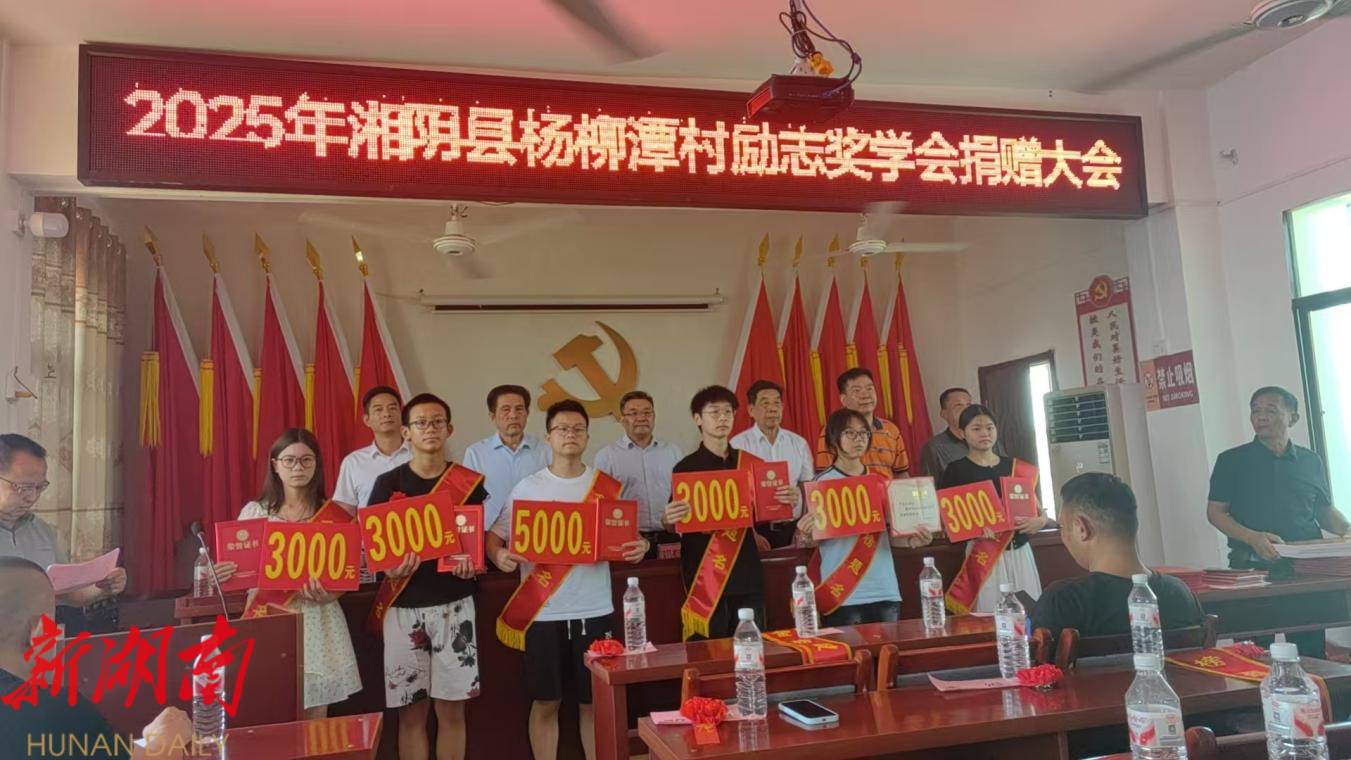 湖南日报·新湖南客户端8月25日讯(通讯员 易劲军)“这里永远是我的根,大学毕业后,回报家乡、传递爱心是我们年轻人应有的担当。”8月24日,在湘阴县湘滨镇杨柳潭村励志奖学会捐赠大会上,录取武汉理工大学的学生代表邓广的发言充满深情。
