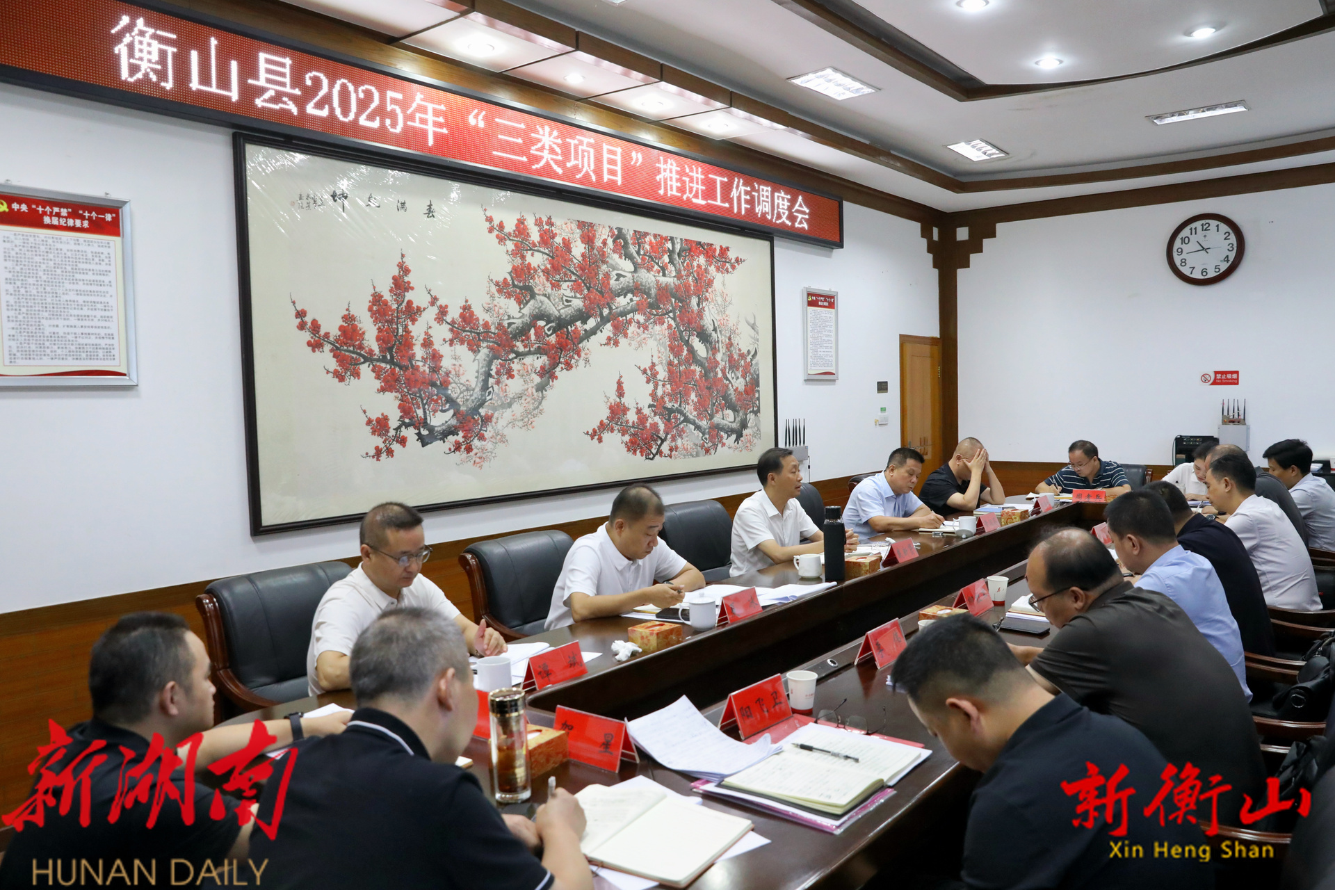新衡山客户端8月25日讯(记者:刘永欢 周继晋)8月25日,衡山县召开2025年“三类项目”推进工作调度会。衡阳市政协副主席、衡山县委书记戴新贤出席会议并讲话。他强调,要进一步增强项目推进工作的责任感和紧迫感,聚焦项目推进中的难点堵点,研究部署攻坚举措,为经济社会高质量发展提供坚强支撑。