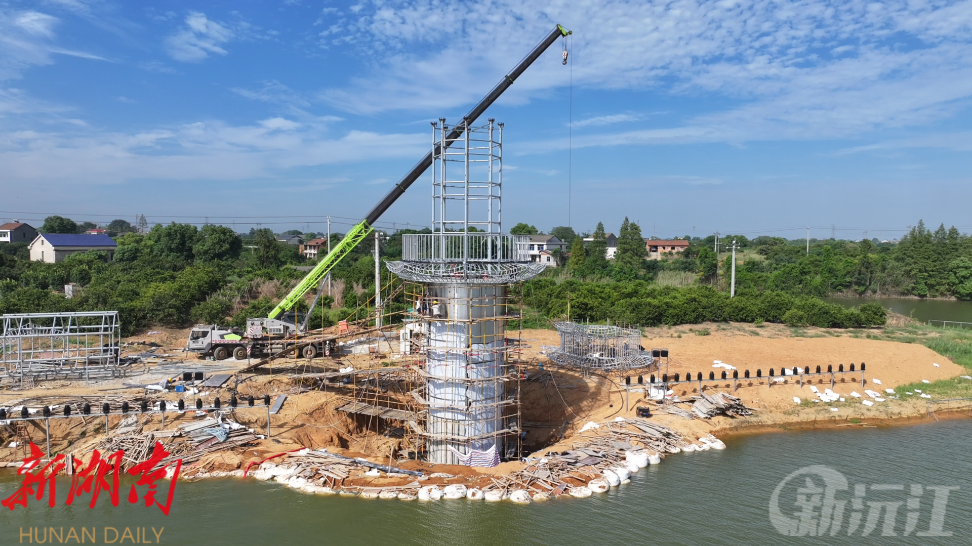目前,项目主体框架已完成百分之四十,水幕设备成功安装。这座“会说话的文明灯塔”,正以光影为笔、文化为魂,在洞庭湖畔书写新时代文旅融合的传奇篇章。
