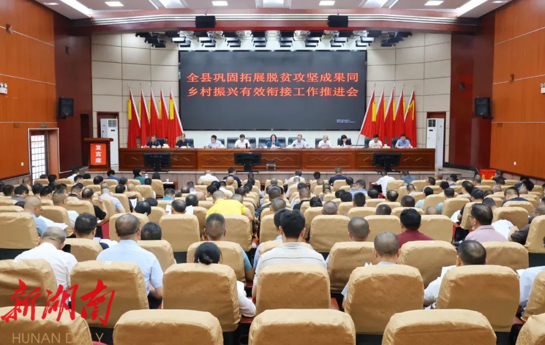 新新邵客户端8月22日讯(记者 屈凌芙蓉 唐文峰)8月22日,新邵县召开全县巩固拓展脱贫攻坚成果同乡村振兴有效衔接工作推进会,深入总结当前工作成效与不足,全面剖析存在的问题,并对下阶段重点任务进行安排部署。县委书记黄海蓉出席并讲话,强调要深入学习贯彻习近平总书记关于巩固拓展脱贫攻坚成果的重要指示批示精神,坚决落实党中央、省委、市委各项部署,集中力量攻坚克难,扎实推进问题整改,全力推动有效衔接工作走深走实、提质增效。县委副书记、县长谢小军主持会议,县委副书记、统战部部长王振波传达有关会议精神、宣读《新邵县巩固拓展脱贫攻坚成果同乡村振兴有效衔接工作“七条措施”》 ,县政协党组书记、主席邹功树出席会议。