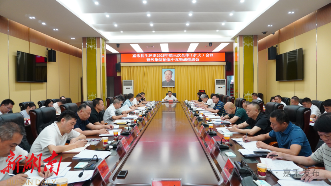 铸都嘉禾客户端8月25日讯(记者:雷佳悦) 8月22日,县生环委2025年第三次全体(扩大)会议暨污染防治集中攻坚战推进会议召开。 县委书记、县生环委主任 何勇主持并讲话。
