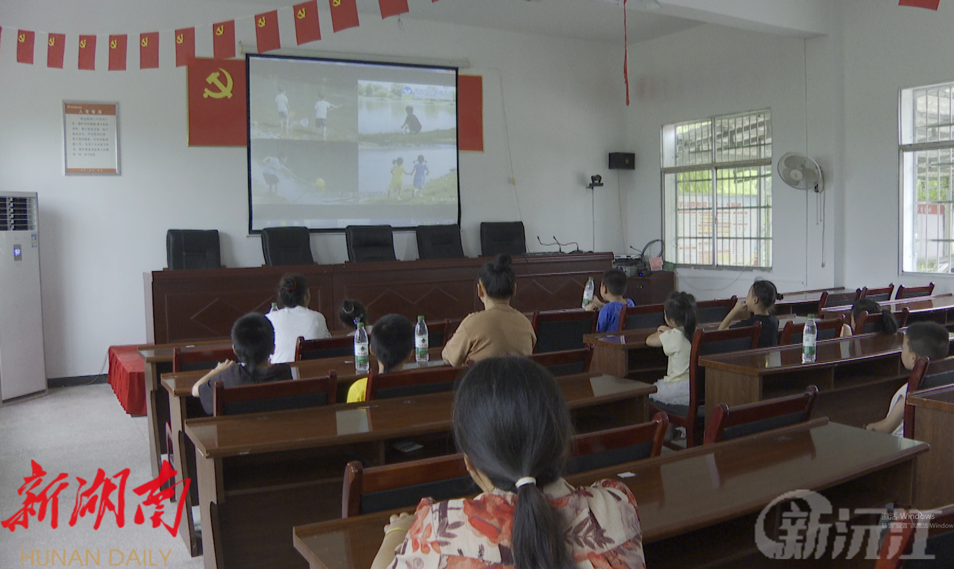 而在新丰村村民服务中心,村干部正组织留守儿童集中观看防溺水教育视频。通过生动直观的画面,孩子们不仅学到了实用的防溺水知识,更深刻认识到溺水风险的严重性。同时,这样既能帮助村民看护留守儿童,更能从源头上提高孩子们的自我保护能力。