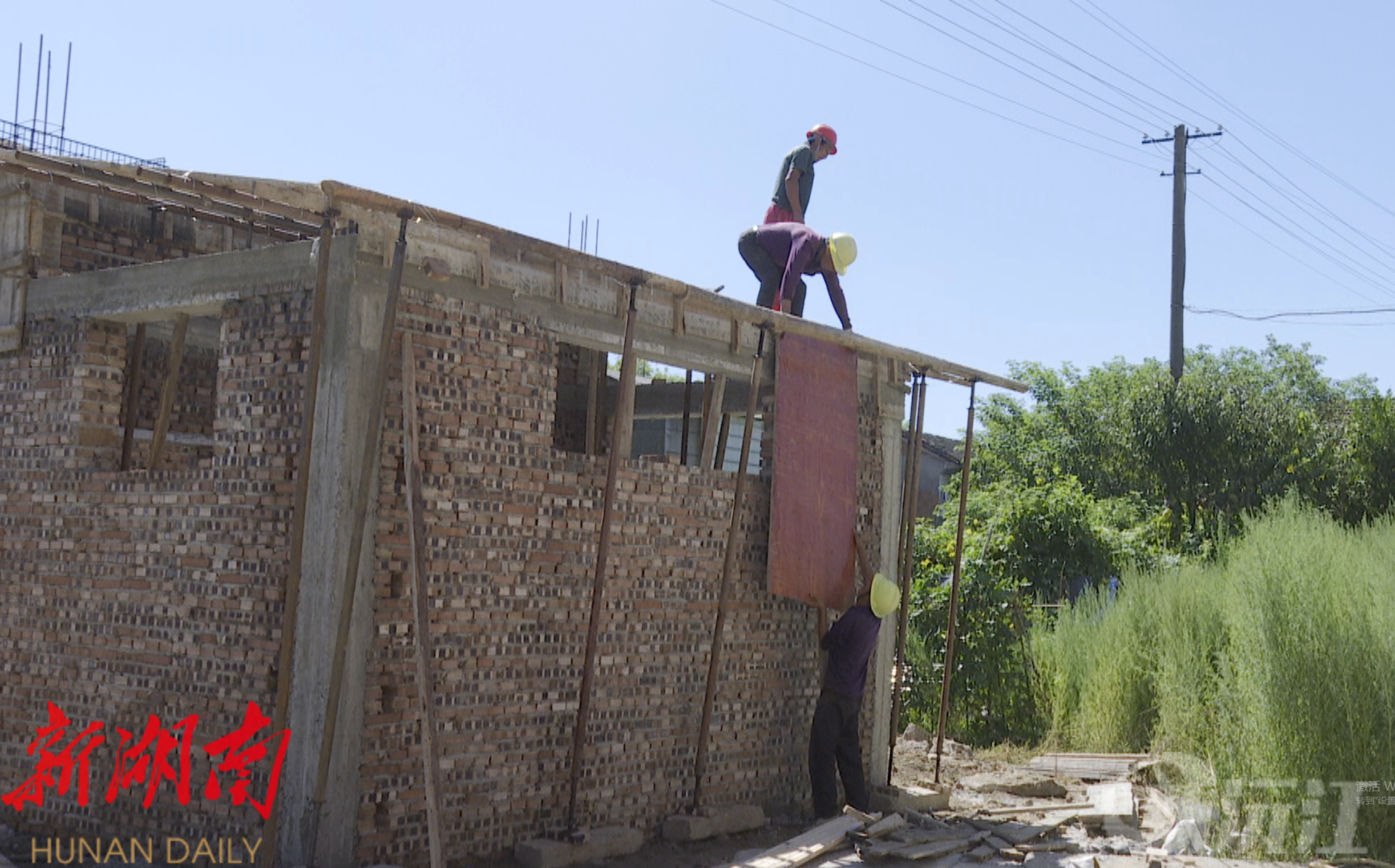 在共华镇黄土包社区停车场附近,一座崭新的公共卫生间正在紧张有序地建设中。几名工人顶着烈日忙着给新建公共卫生间封顶,争取早日进入室内装修阶段。