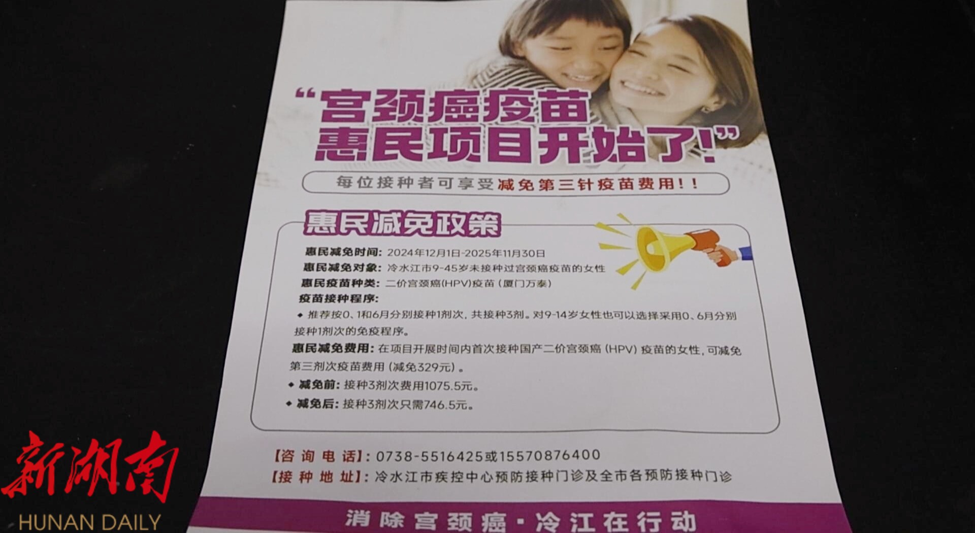 湖南日报·新湖南客户端8月26日讯(通讯员 潘雁平 曹丹)近日,冷水江市正式启动HPV疫苗和带状疱疹疫苗专项惠民补贴活动,针对不同年龄段人群提供相应补贴,其中九价HPV疫苗最高可为接种者节省费用上千元。