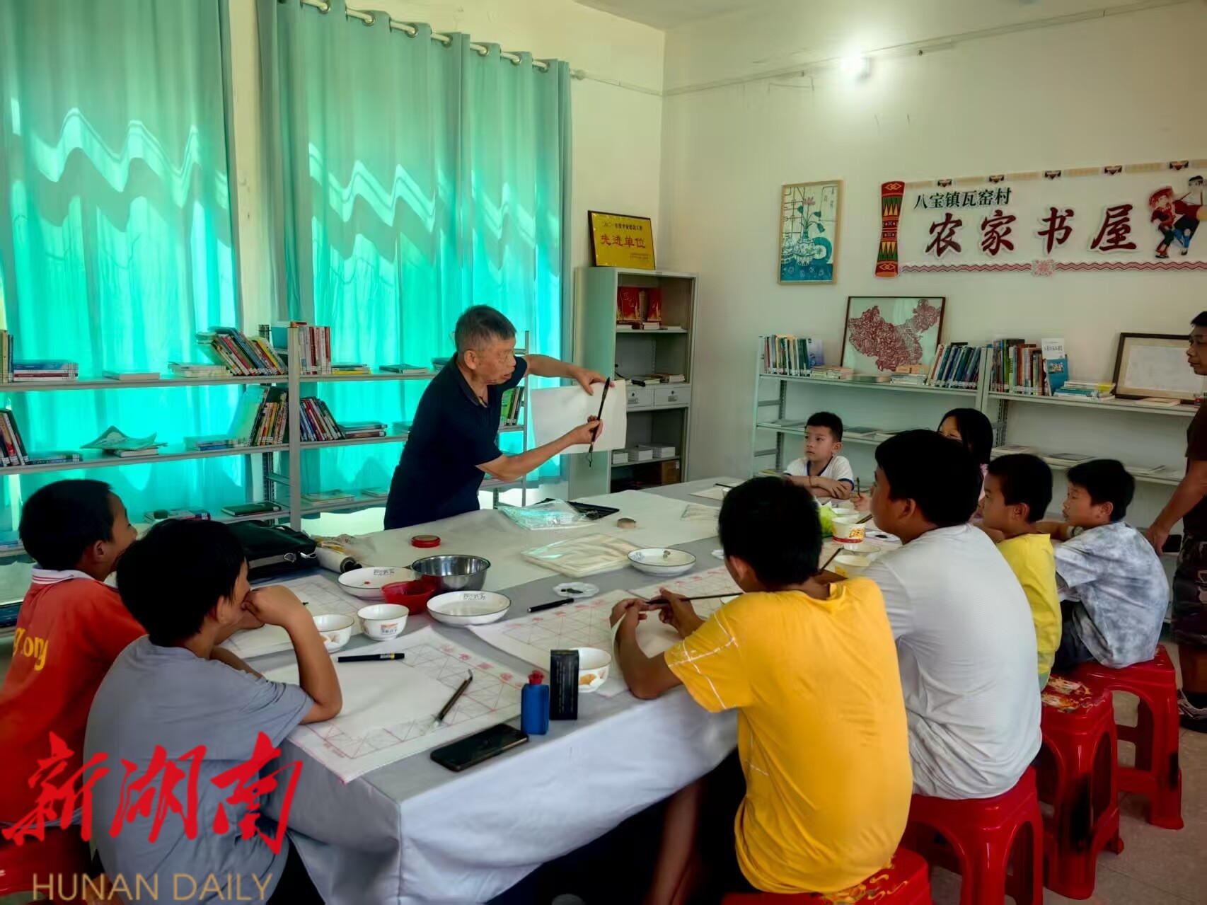 湖南日报·新湖南客户端8月27日讯(通讯员 王嘉瑜 唐元怀)为丰富留守儿童暑期生活,感受传统文化魅力。8月26日,八宝镇瓦窑村农家书屋邀请祁阳市书法家协会老师,为村里的孩子们带来了一场浸润着墨香与童趣的书画艺术体验活动,让满架书香的农家书屋更添几分雅致韵味。