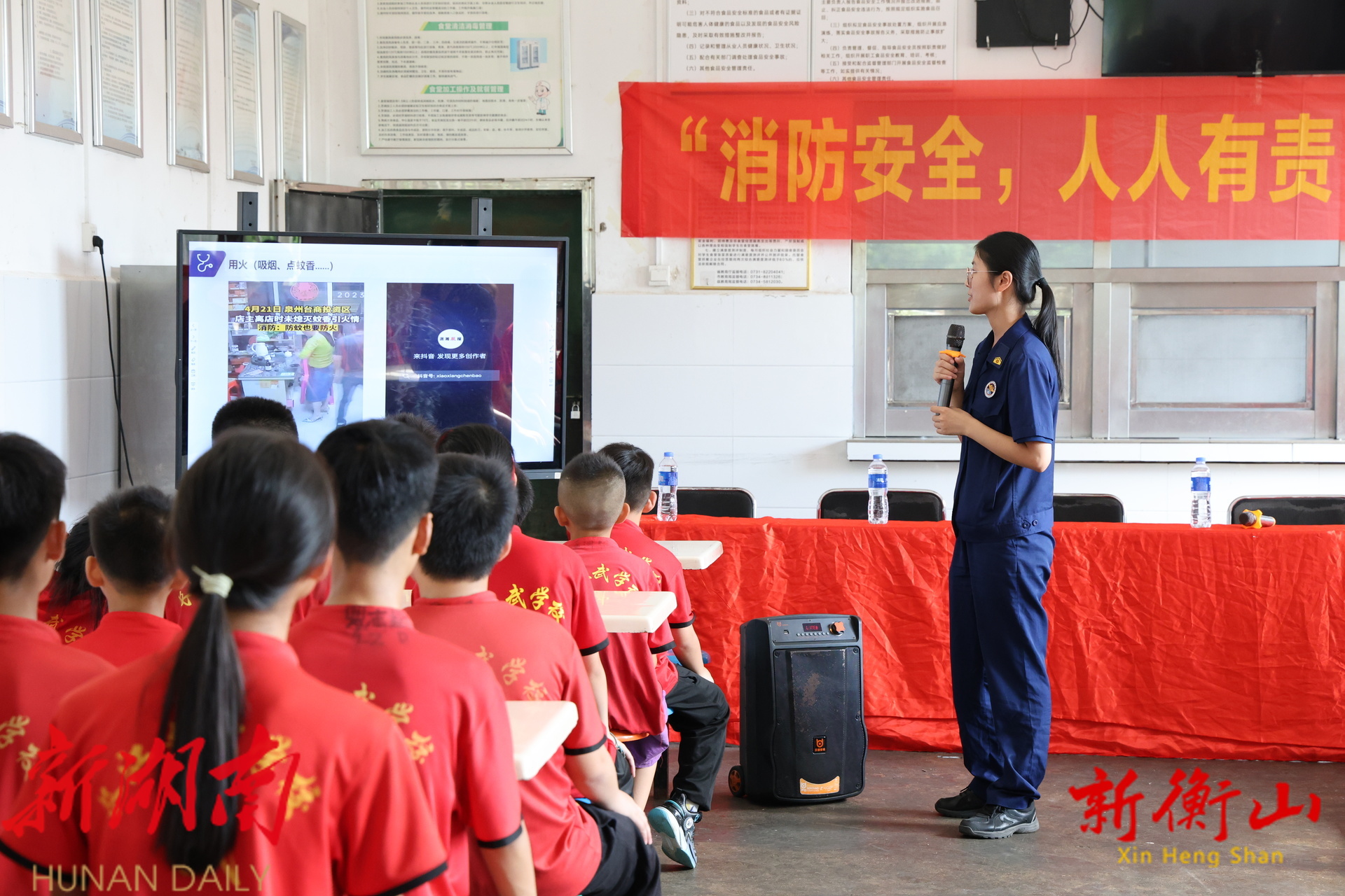 新衡山客户端8月27日讯(记者:赵诗 向微 张诗琪 通讯员:李静)为有效提升校园消防安全管理水平,切实增强师生消防安全意识和自防自救能力,8月27日,衡山县消防救援大队走进衡山县长江文武学校,开展2025年秋季“开学第一课”消防安全知识讲座。