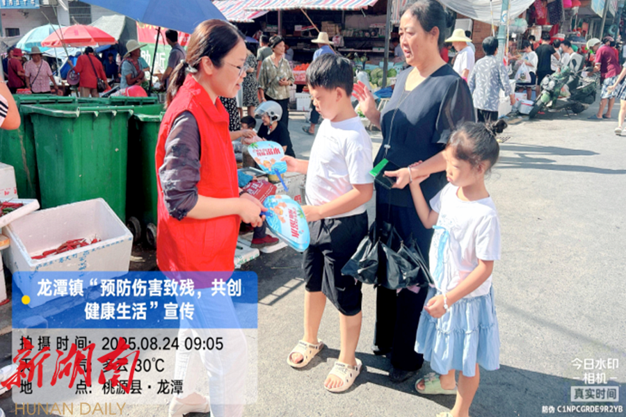 视外桃源客户端8月26日讯(通讯员: 陈丽莎 ) 为强化残疾预防宣传教育,切实提升群众的残疾预防意识,近日,龙潭镇围绕 “ 预防伤害致残 共创健康生活 ” 这一主题,精心组织开展了第九个残疾预防日宣传活动。