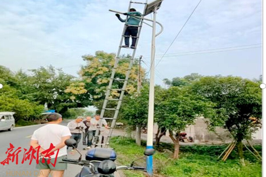视外桃源客户端8月26日讯(通讯员:彭仁乾)近日,漆河镇枫岭村村民反映村内主干道部分路灯损坏不亮,给夜间出行带来不便与安全隐患。村委会在得知情况后,高度重视群众诉求,第一时间组织专业电工对村内主干道的路灯展开全面排查。