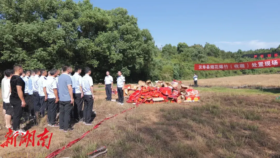 集中销毁行动由县应急管理局、县公安局、市生态环境局汉寿分局、县公安交警大队、县消防救援大队和太子庙镇等单位联合执行。各部门按预案分工协作,公安、应急部门负责现场警戒,交警部门负责运输押运,环保部门实时监测空气质量,消防部门全程提供应急保障。整个销毁过程安全、有序、合规。