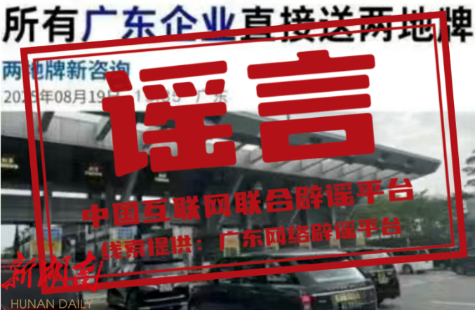真相: 近日,网络上一则题为“8月起,所有广东企业直接送两地牌”的文章,引发关注。经广东交警核实,该说法为谣言,切勿轻信。