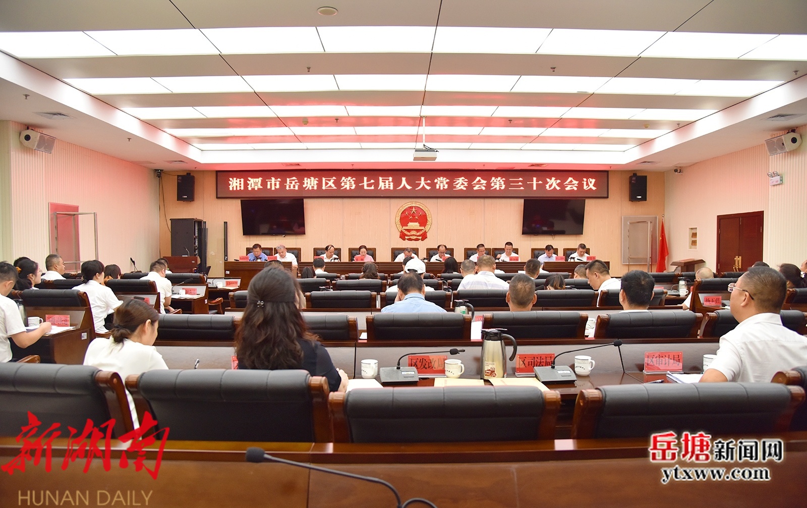 岳塘 融媒 8月2 7 日讯 (通讯员 朱维)8月27日,湘潭市岳塘区第七届人大常委会第三十次会议召开。区人大常委会主任颜谦主持会议,副主任李白杨、邹灿、蒋新跃、杨建伟、曾令波等25名区人大常委会组成人员出席会议。区委常委、区人民政府常务副区长唐俊杰,区人民政府副区长文午,区人民法院院长崔卫斌,区人民检察院检察长何永红,部分市、区人大代表,区监委、区政府办、高新区办公室负责同志,区财政局、区发改局、区审计局、区司法局负责同志,昭山镇人大主席、人大各街道工委主任以及区人大常委会机关工作人员列席会议。