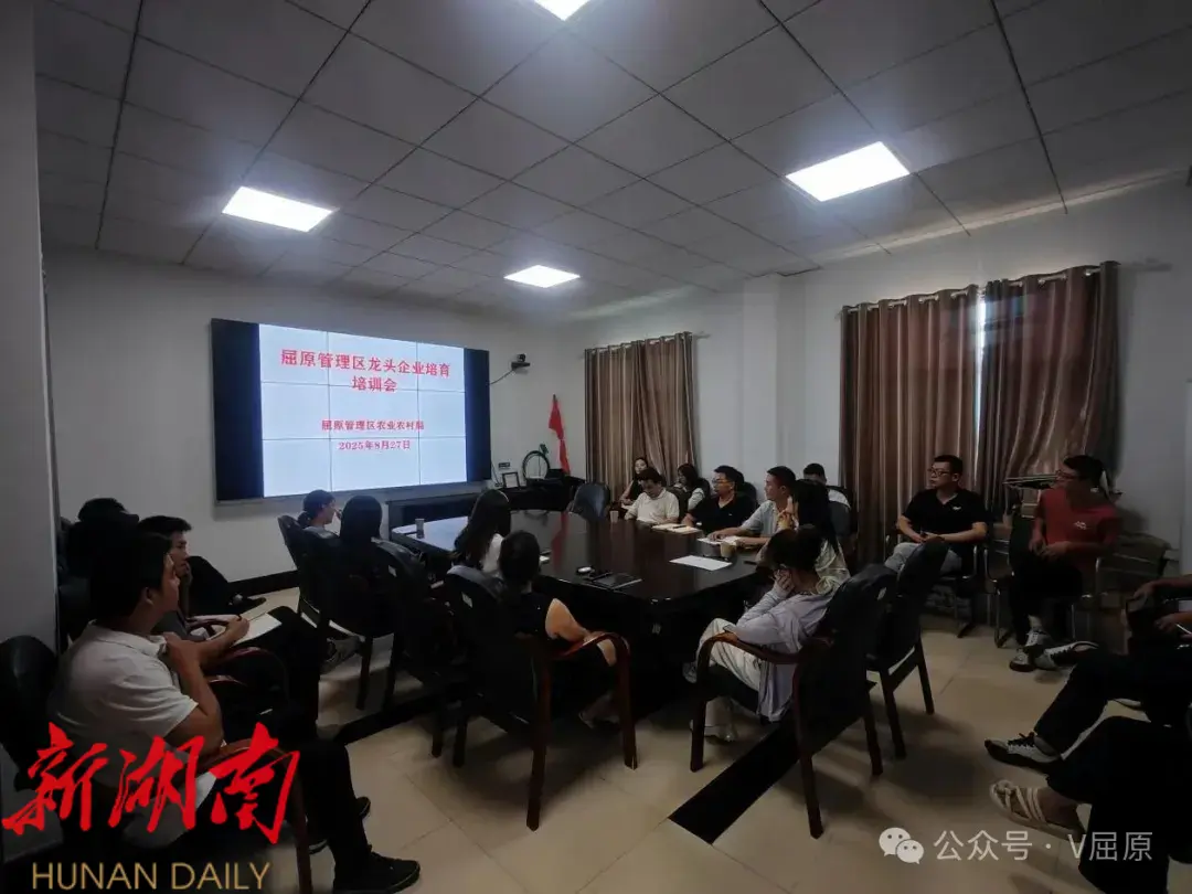 湖南日报·新湖南客户端8月28日讯(屈原区农业农村局供稿) 8月27日,屈原管理区农业农村局邀请岳阳市农业农村局乡村产业发展科科长黄艳,面向辖区内省、市两级农业产业化龙头企业负责人,开展农业产业化专题培训,为企业精准解读政策、破解发展难题,助力我区农业产业高质量发展。