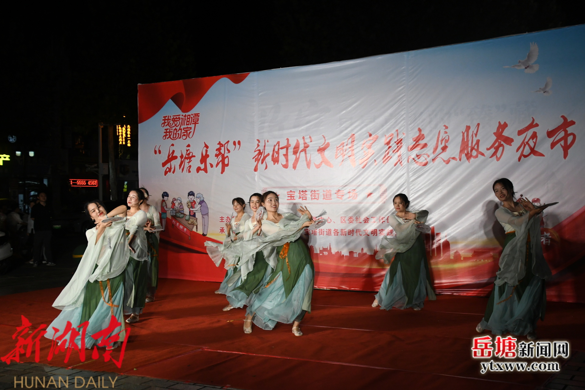 本次活动由岳塘区新时代文明实践中心、区委社会工作部联合主办,宝塔街道新时代文明实践所及街道各新时代文明实践站共同承办,聚焦居民日常生活需求,从“衣、食、医、用、学”等多维度搭建服务平台,让居民在休闲逛夜市的同时,轻松享受多样化便民服务。