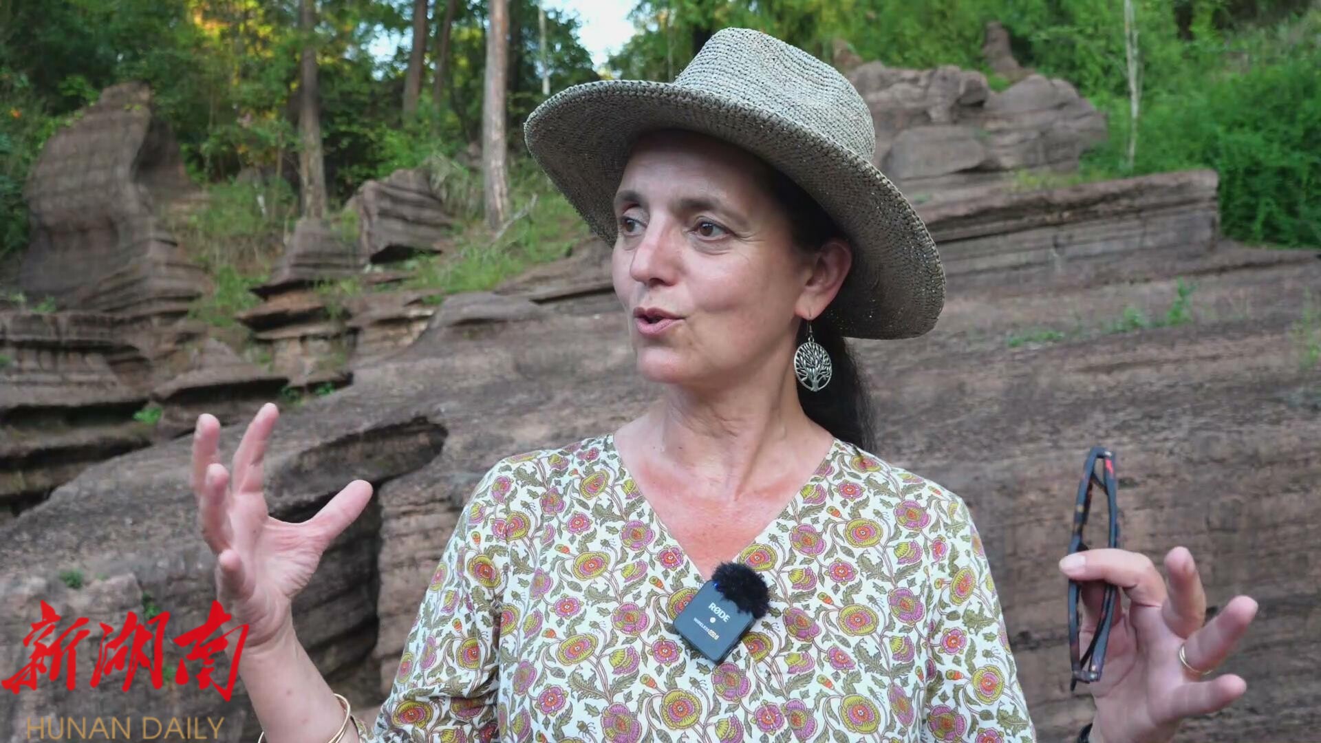 来自法国的摄影师瑞秋说,这是她第一次来中国,非常开心有机会来到红石林,这里可以亲近大自然,这个地方太美了,融合了这里的人与自然,所以我认为这个地方太棒了。