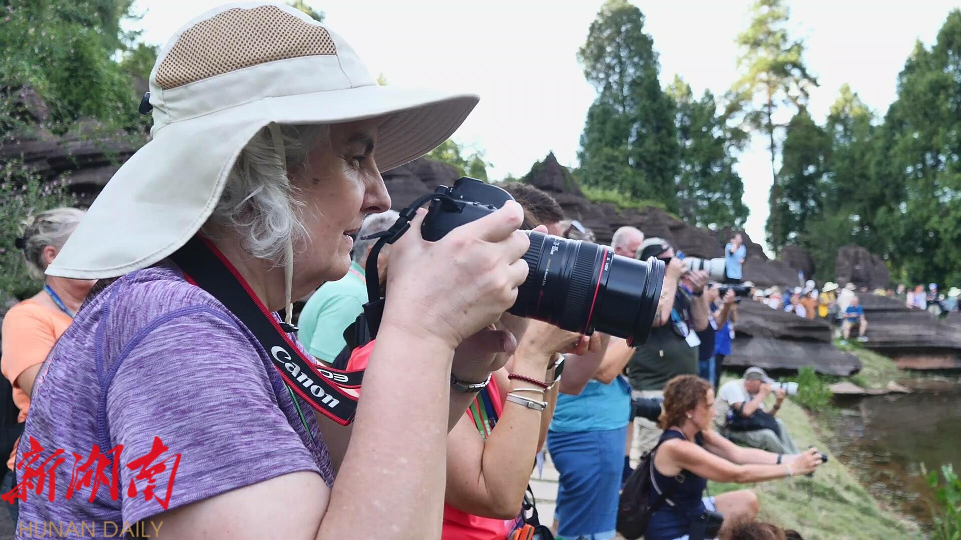 新湖南客户端8月27日讯(通讯员 杨昊天)第九届世界摄影大会“发现湖南 走进湘西”采风活动8月26日下午走进古丈县红石林景区。来自全球40多个国家的300余名摄影师齐聚于此,用镜头捕捉这片形成于5亿年前奥陶纪的地质奇观。