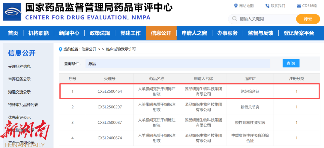 湖南日报·新湖南客户端8月29日讯(c长沙经开区工作站记者 陈琪 通讯员 姚碧娟)8月28日,源品细胞生物科技集团有限公司(“源品生物”)自主研发的1类生物制品“人羊膜间充质干细胞注射液”临床试验申请(IND)正式获得国家药品监督管理局药品审评中心(CDE)批准!这也是源品生物在干细胞创新药领域取得的第4个临床批件。这一突破不仅标志着全球首个针对“绝经综合征”的干细胞药物正式进入人体临床试验阶段,更让万千受困于更年期症状的女性,看到了更根本的治疗希望。