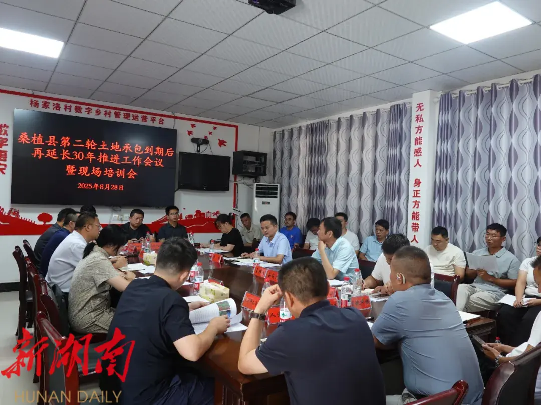 湖南日报·新湖南客户端8月29日讯 (通讯员 张思)8月28日,桑植县第二轮土地承包到期后再延长30年推进工作会议暨现场培训会在瑞塔铺镇杨家洛社区召开,旨在进一步统一思想、交流经验、明确任务,推动全县土地延包工作扎实有序开展。副县长周擎出席。