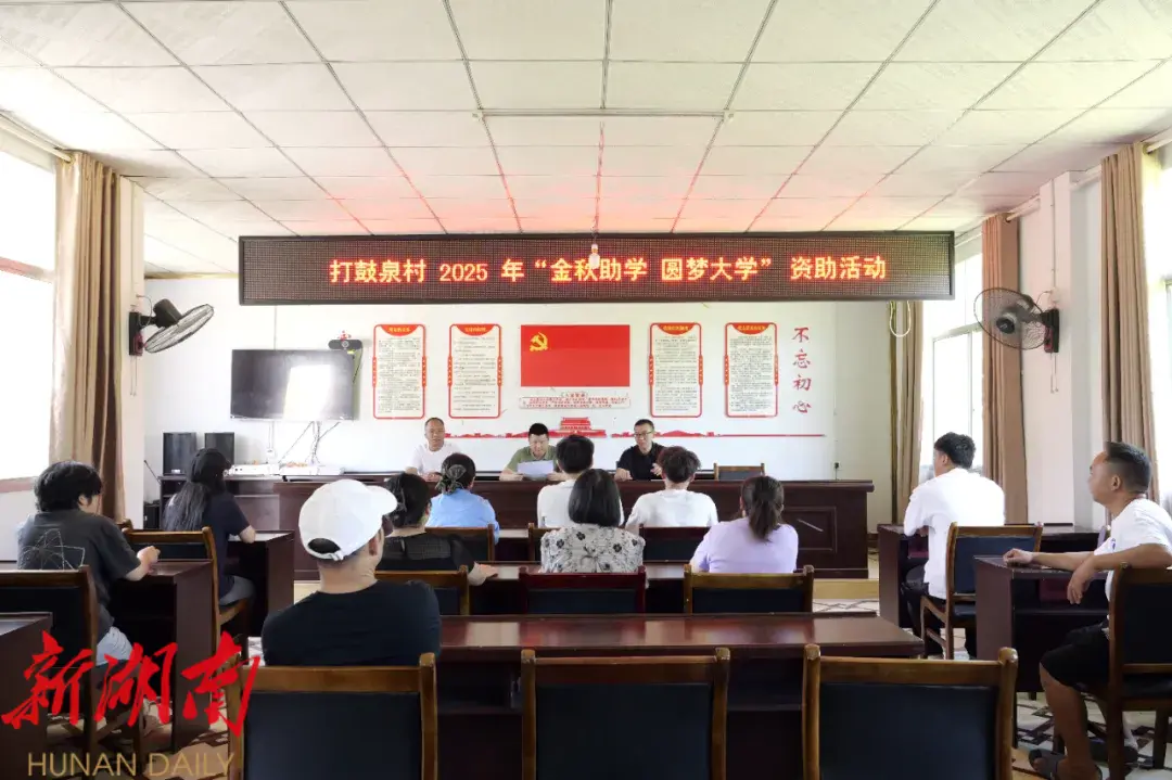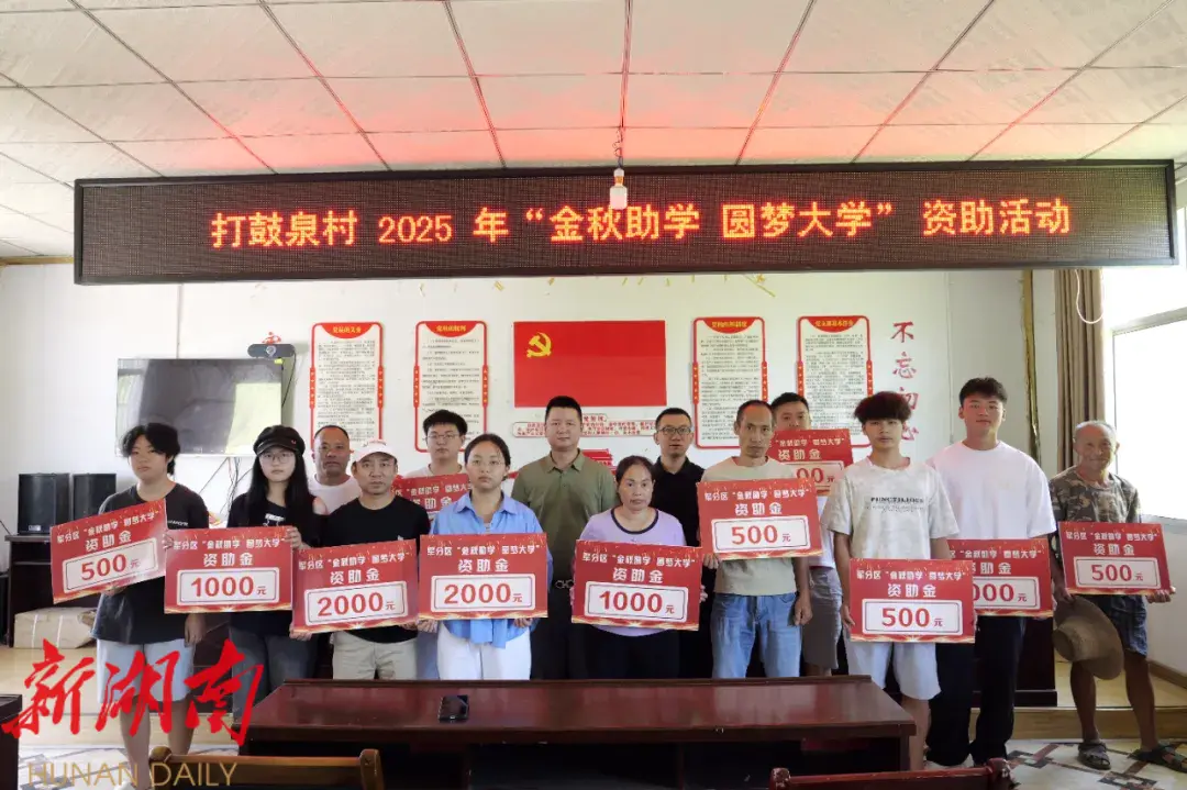 湖南日报·新湖南客户端8月29日讯 (通讯员 刘静 王玺青)8月28日,洪家关白族乡打鼓泉村举行 “金秋助学·圆梦大学” 资助活动,为全村11名2025年大学新生发放 资助金 11000元。