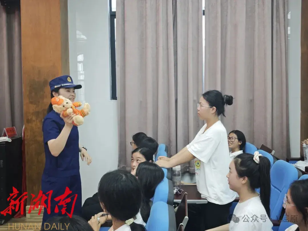 授课过程中,消防宣传员首先为同学们讲解了火灾的基本概念与危害,并通过剖析典型火灾案例,深刻警示大家“隐患险于明火”。随后,重点围绕如何扑救初起火灾、如何正确报警以及火场中如何迅速疏散逃生等实用技能进行了详细讲解与示范,着力提升学生们自防自救的实际能力。在互动问答环节,同学们踊跃参与,现场气氛热烈,答对问题的学生还惊喜地获得了特色“消防小熊”纪念品。