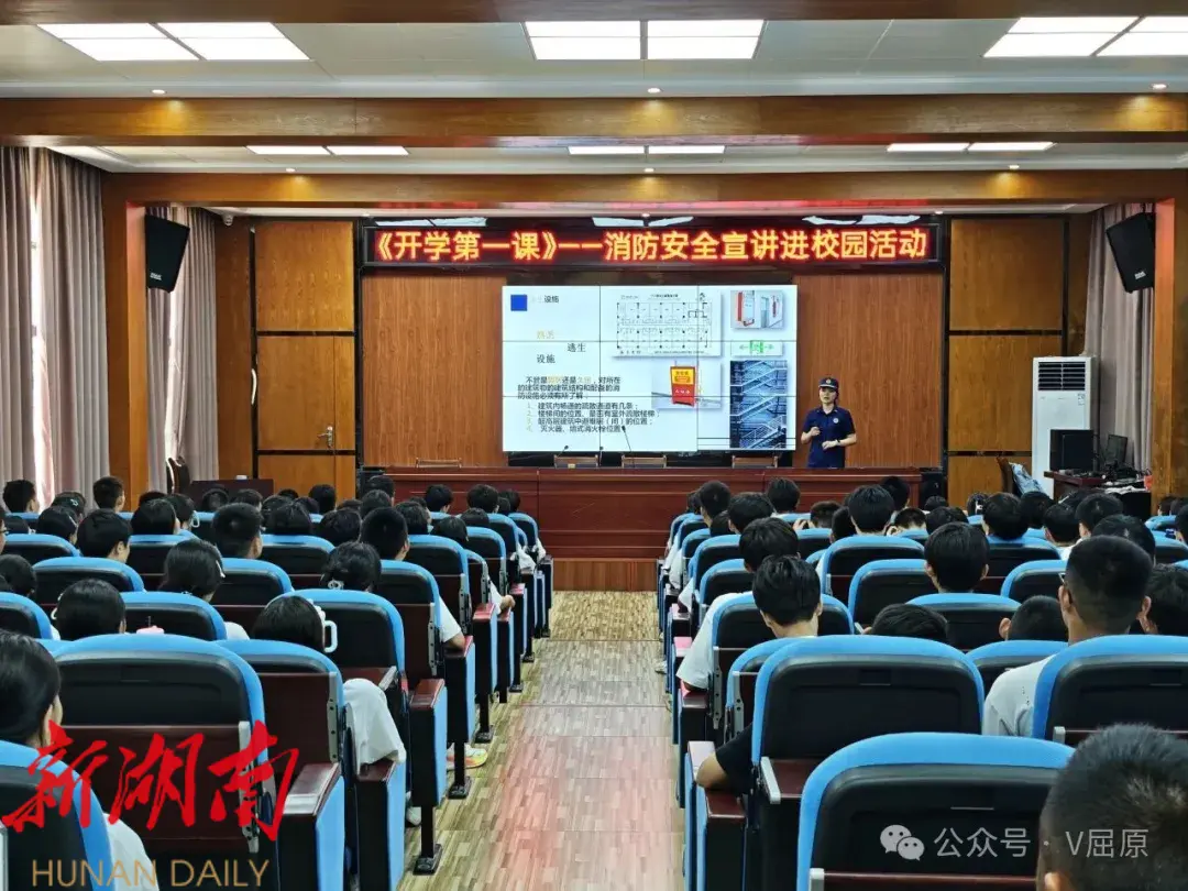 湖南日报·新湖南客户端8月29日讯( 屈原区消防救援大队供稿) 新学期伊始,为切实增强校园师生消防安全意识,8月27日,屈原管理区消防救援大队深入屈原中学,为全体高一新生带来了一堂生动且富有教育意义的“消防开学第一课”。