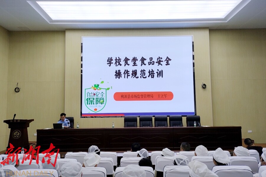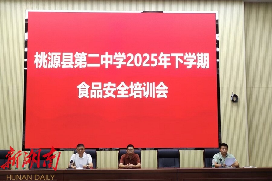 视外桃源客户端8月28日讯(通讯员: 陈艳 莫晓晖 ) 为进一步强化食堂从业人员的食品安全责任意识与自律能力,保障广大师生饮食健康,8月26日,桃源县第二中学举办了2025年秋季食堂食品安全专题培训。本次培训特别邀请到桃源县市场监督管理局食品经营安全监督管理股股长登台授课。