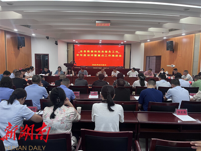 湖南日报·新湖南客户端8月29日讯(通讯员 刘诗棋) 8月28日,全县数据和政务服务工作半年度讲评暨重点工作推进会召开。会议总结前段数据和政务服务工作情况,安排部署下阶段重点任务。副县长、县公安局局长刘斌清出席会议并讲话,进驻政务服务大厅单位首席代表和行政审批股长参会。