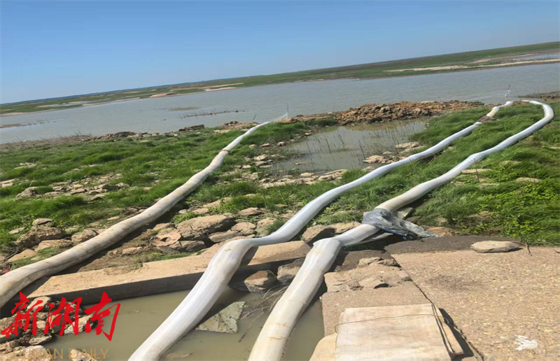 全力抽取外水。街道紧急统筹调度9台10寸大型水泵及配套水管,组织专业技术人员,在临近洞庭湖和蓄水湖的关键区域迅速完成泵站架设工作,实行24小时不间断抽水作业,每日总抽水量超过6万立方米。同时,经街道积极协调,征得湘粮湖承包户同意,紧急调水8万立方米支援周边受旱农田。多方水源的及时补充,有效缓解了沿线农田的燃眉之急。