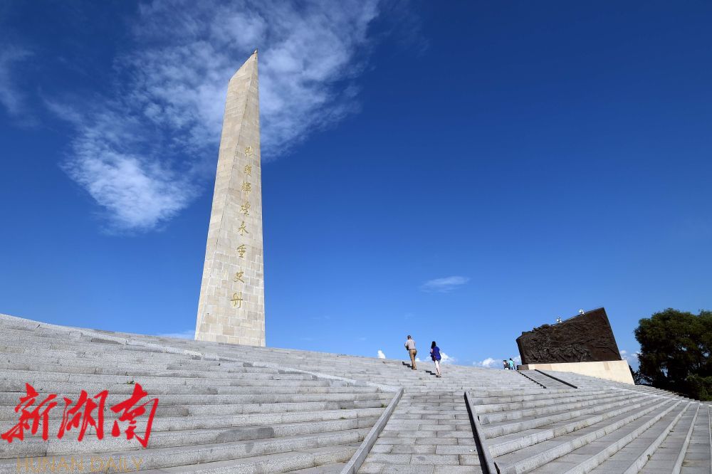 2014年8月14日,游客在狮脑山百团大战纪念碑游览。新华社记者 范敏达 摄