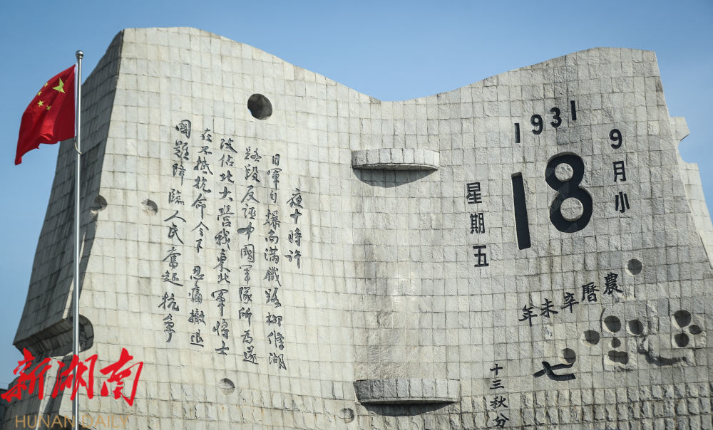 2021年9月18日拍摄的辽宁省沈阳市“九一八”历史博物馆的残历碑。新华社记者 潘昱龙 摄