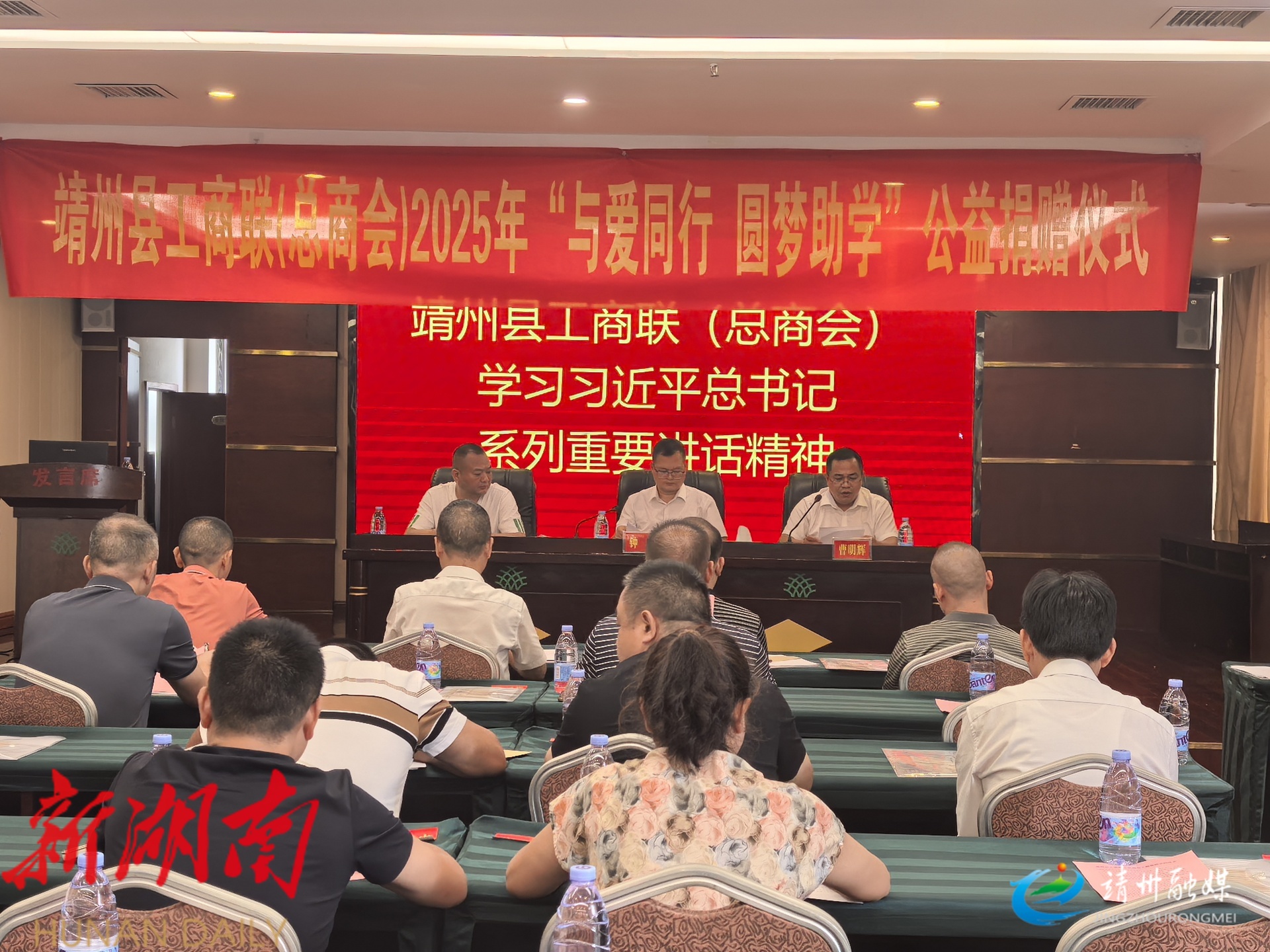 靖州融媒8月29日讯 (记者 钦苏芬 通讯员 何列秋)8月29日,靖州苗族侗族自治县工商业联合会(总商会)2025 年 “与爱同行 圆梦助学” 公益捐赠仪式在武陵城酒店举行。
