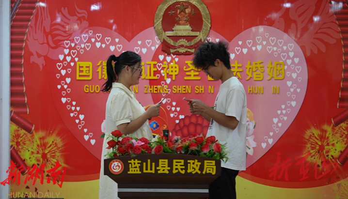 新蓝山客户端8月29日讯 (通讯员 易紫轩 郑冰玲)8月29日是农历七夕节,为推动移风易俗,弘扬文明婚恋新风,蓝山县民政局婚姻登记处迎来领证高峰,同时向新人发出“婚事简办、喜事新办”的倡议,让爱情在简约中更显真挚。