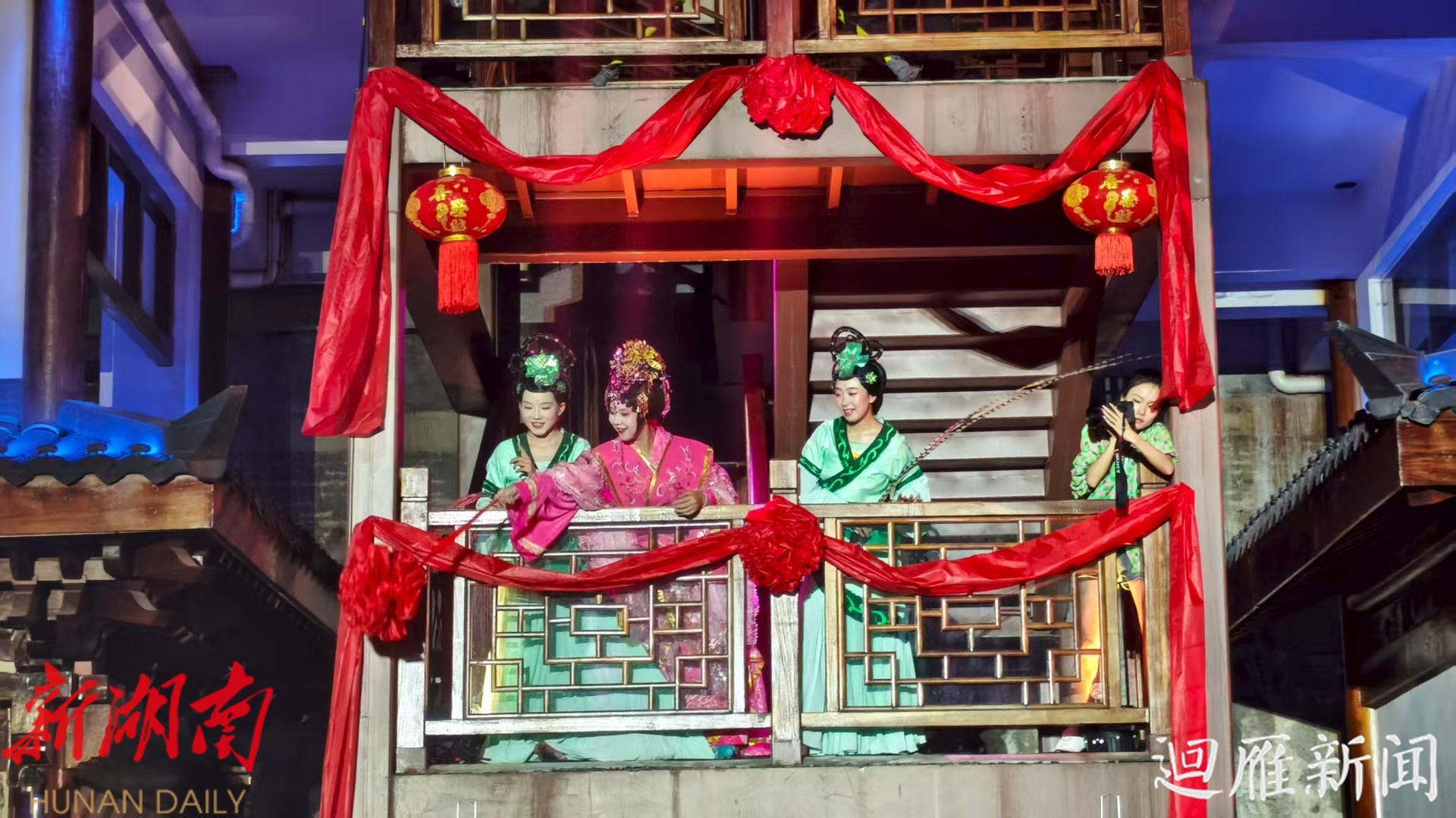 当祁剧的婉转唱腔邂逅七夕夜的浪漫,8月29日晚上,回雁峰旅游区潇湘八景文化创意场灯火璀璨,“绣楼牵红线・祁韵结良缘” 祁剧进景区暨相亲联谊会活动热闹开演。活动以戏曲为媒牵起知音缘,让单身青年在古韵氛围中邂逅爱情,为回雁峰旅游区的夏夜添了几分文化雅趣与浪漫心动。