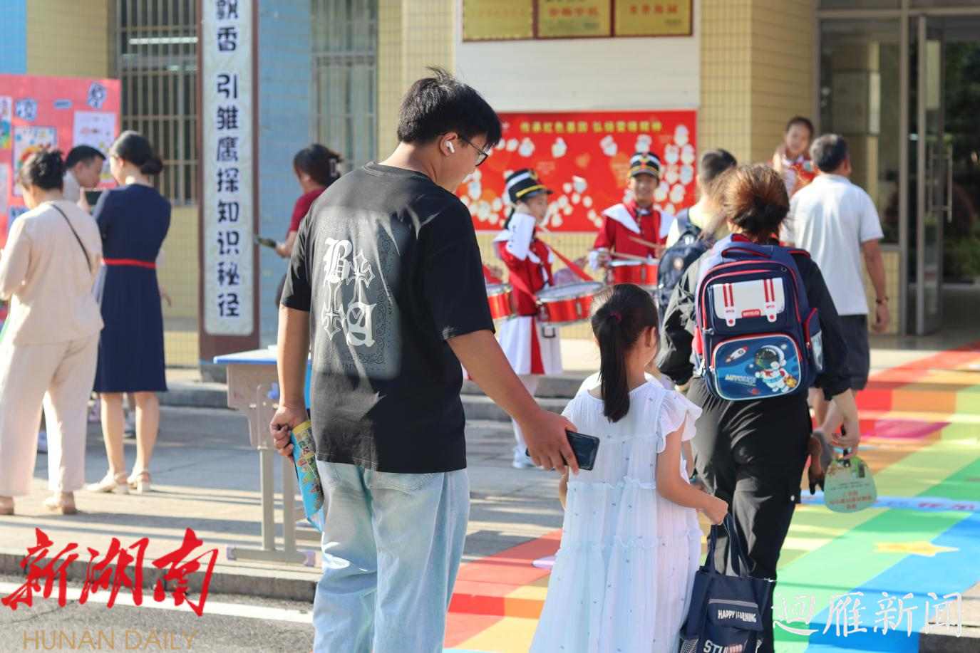 清晨的校园处处洋溢着新生与活力:七彩步道从校门延伸至崇德楼大厅,宛如铺就通往知识殿堂的 “星光大道”,大厅两侧的迎新对联醒目雅致、喜乐洋洋,饱含着学校对孩子们的殷切期望,让孩子们一进校园便感受到满满的仪式感。
