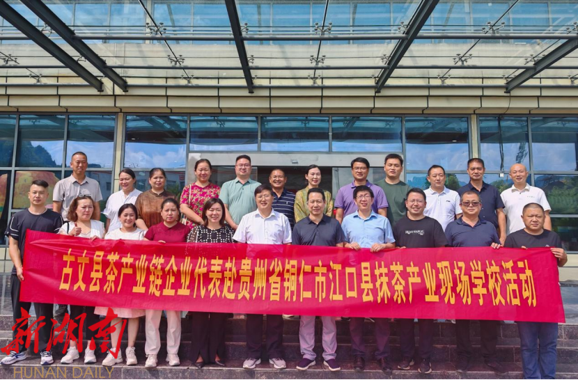 新湖南客户端8月30日讯(通讯员 杨玉子)8月29日,根据全县优质茶产业链工作需要,在县人大常委会主任、古丈县优质茶叶产业链常务副链长郑良武的带领下,古丈县茶叶局组织全县茶企代表,县科技服务团及县农业农村水利局、县茶叶局相关工作人员赴铜仁市江口县学习抹茶产业。此次学习聚焦抹茶产业种植管理、加工生产、园区建设、品牌运营及新茶饮等衍生品开发等领域,实地探访优质企业与特色项目,为古丈优质茶产业链建设与发展汲取先进经验、寻求合作商机、优化发展路径。