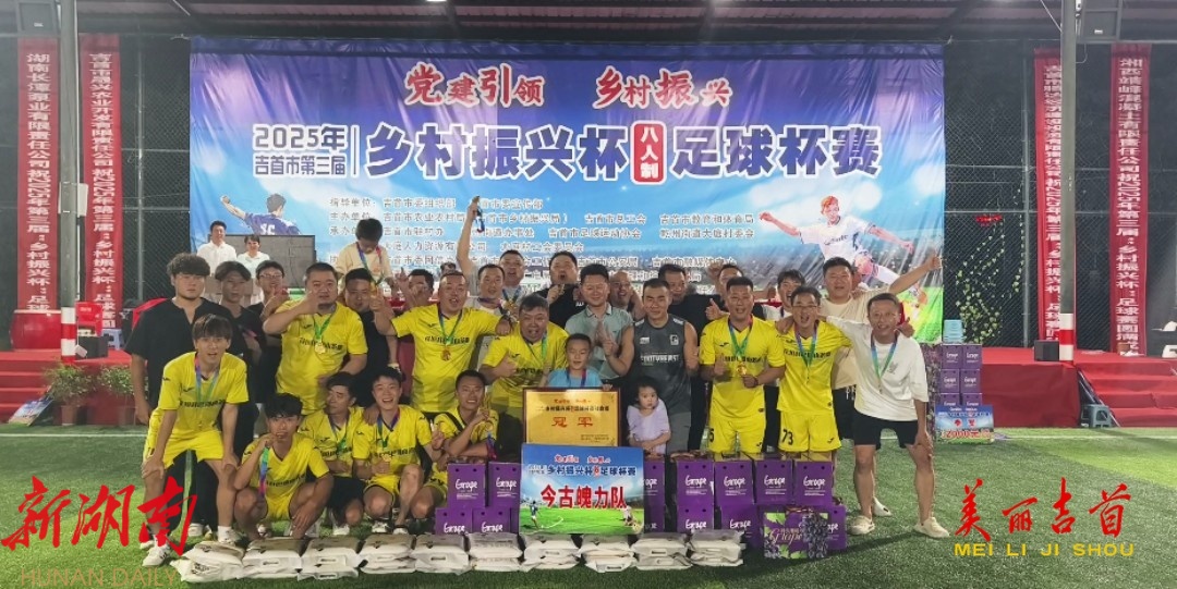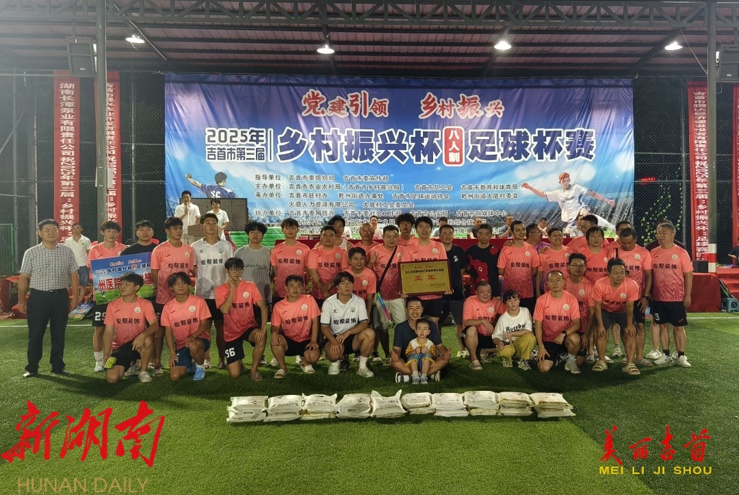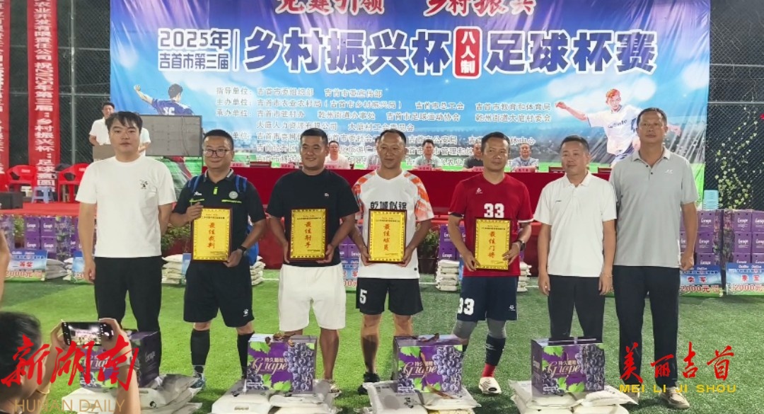吉首市融媒体中心8月31日讯(全媒体记者 龙佩棂 姚元浩 ) 8月30日晚,随着终场比赛哨音吹响,为期37天的2025年吉首市第三届“乡村振兴杯”八人制足球联赛,在乾州街道大庭村足球场圆满落幕。