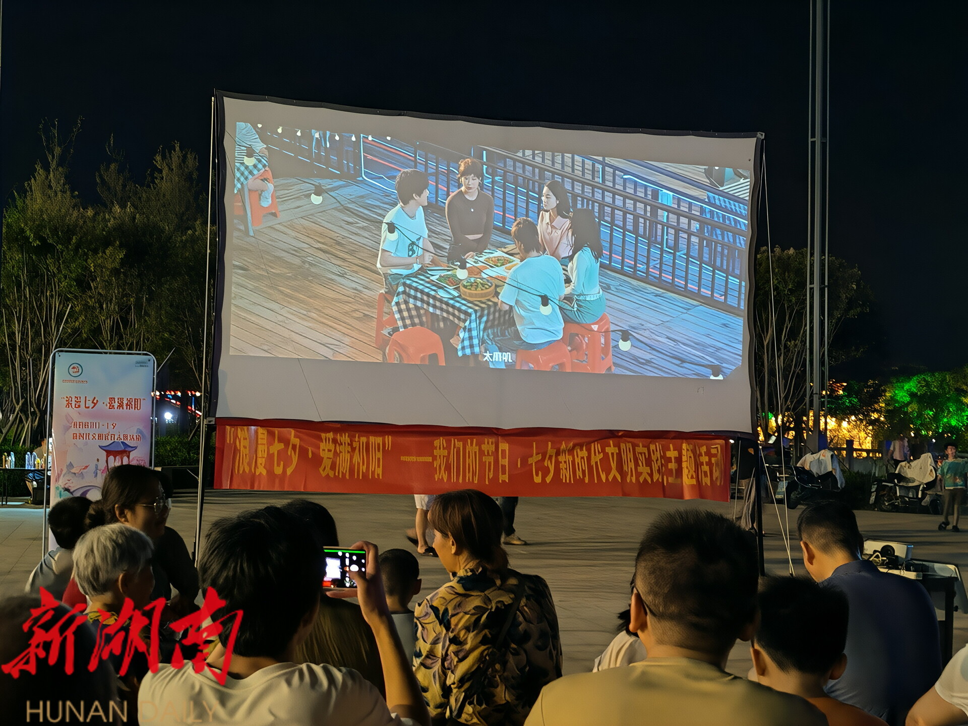 湖南日报·新湖南客户端9月1日讯(通讯员 梁菲 彭旭 陈正)8月29日,祁阳市新时代文明实践中心办公室与祁阳市电影事业管理站联合在祁阳市沿江风光带亲水平台 举办“浪漫七夕·爱满祁阳——传承千年情韵 共筑文明新风”新时代文明实践活动。