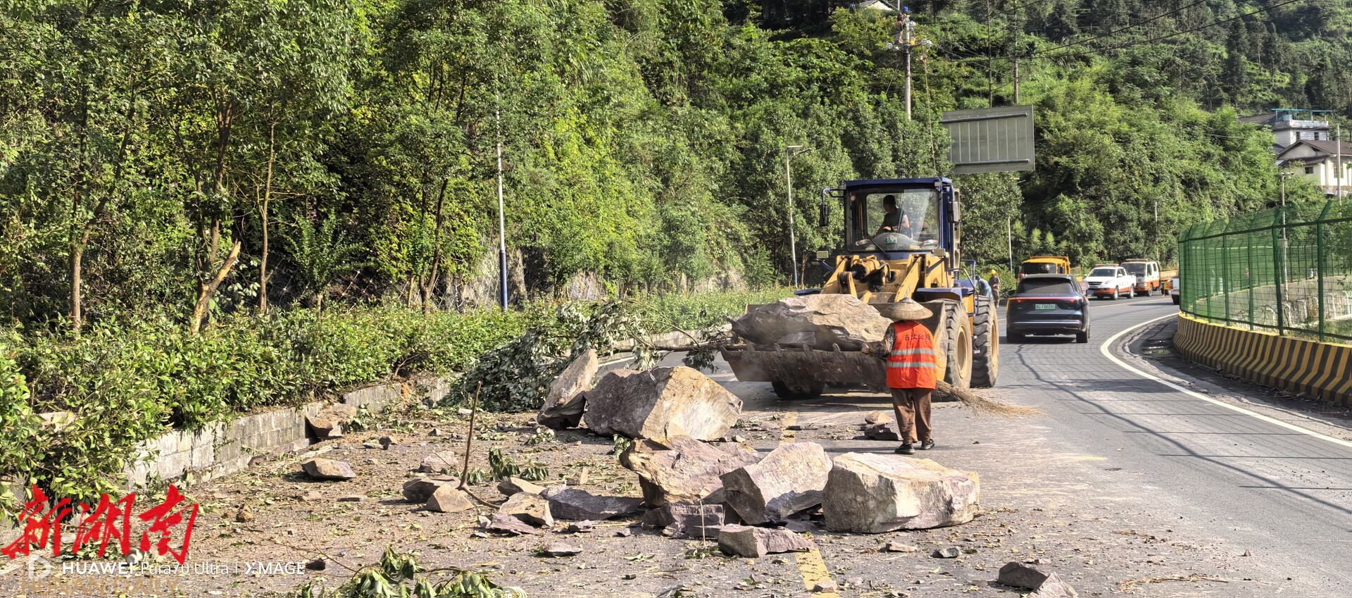 新湖南客户端9月1日讯(通讯员 周舟)8月31日10时23分许,湘西州古丈县G352线太平村路段(K109+700)突发山体落石垮塌灾害。垮塌的落石直接覆盖道路全幅路面,导致该路段交通中断,同时造成沿线部分电力设施损毁。经现场核查确认,事件未造成人员伤亡。