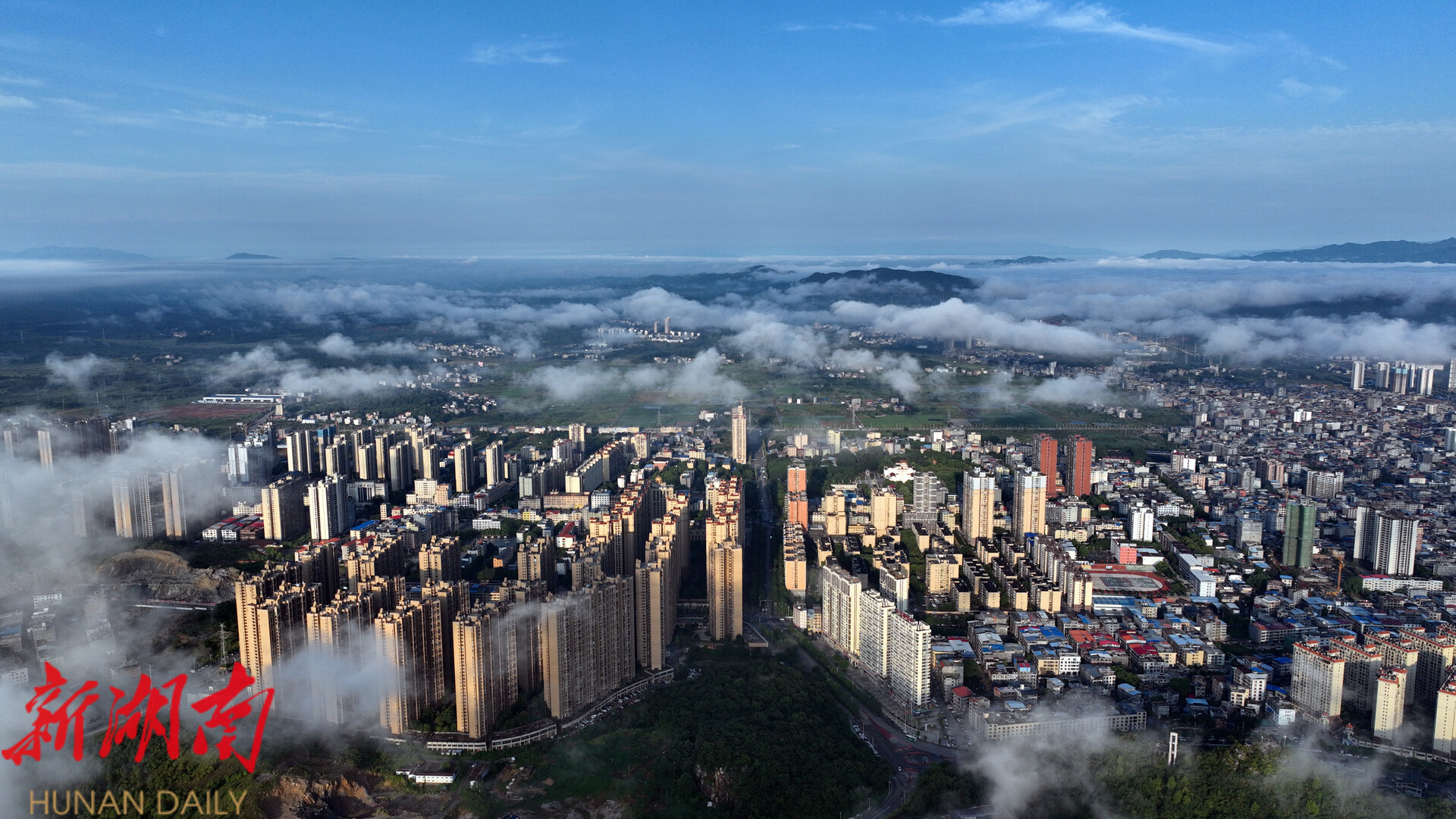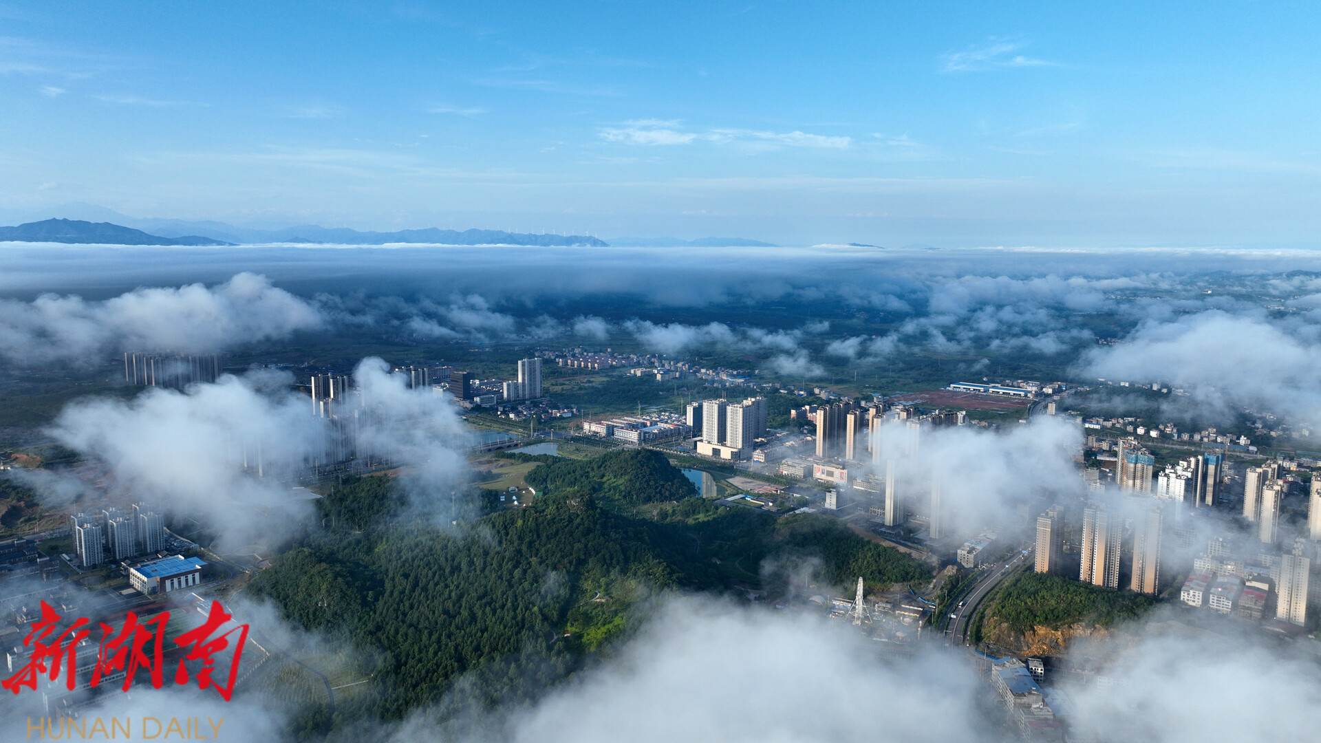 湖南日报·新湖南客户端9月1日讯(通讯员 李严军 ) 8月30日清晨,雨后的宁远县迎来通透的大晴天,一场绝美的平流雾悄然上演。朝阳升起时,云雾随风涌动,或如轻纱舒展、或似海浪翻涌,高楼与公园隐现其中,宛如水墨画卷,如梦如幻美不胜收。