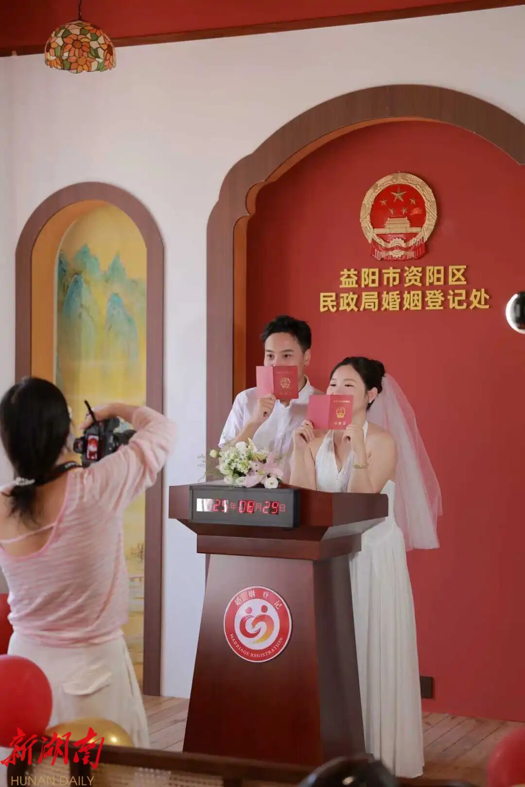 作为益阳市首个入驻景区的婚姻登记机构,在七夕这个特殊节日,该处提前一小时开放服务,大厅内布置了气球和喜字背景墙,工作人员精心调试设备,为新人营造庄重而温馨的仪式感。